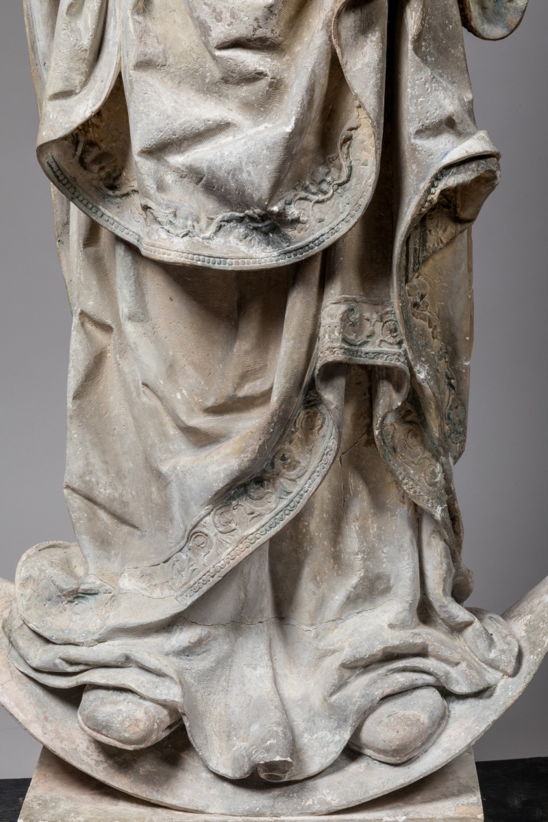 (restaurations anciennes, éléments restitués, fissures en partie inférieure de la robe et de la base, petits accidents).