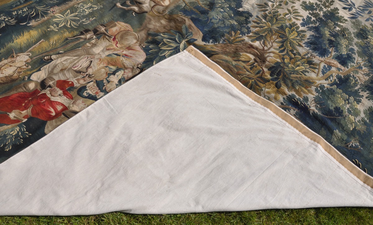 LILLE, the Guillaume WERNIER's widow workshop. A wool and silk TAPESTRY representing the rest of the hunters. Signed.
