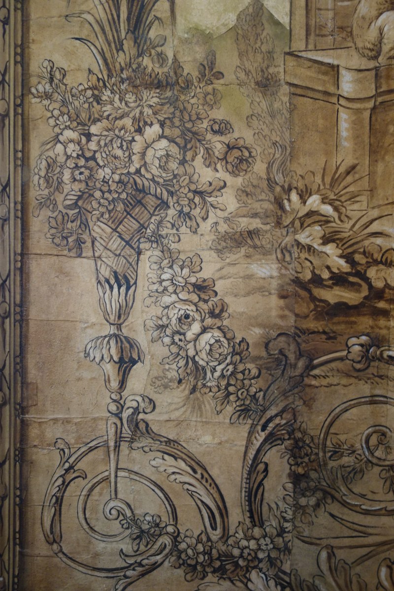 Workshop of Jean-Baptiste OUDRY. The Wolf pleading against the Fox before the Monkey. Brush and black ink, brown ink, black pencil, sanguine traces and white gouache highlights on numerous sheets assembled and mounted on canvas.