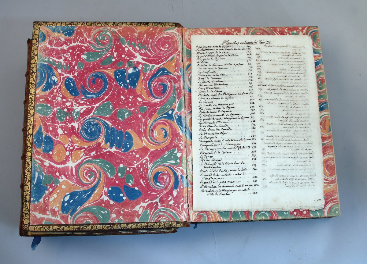 Certaines des suites enluminées furent parfois réunies à un texte explicatif à partir de 1770 (10 volumes in-folio, ou grand in-4°). Ces exemplaires avec le texte ne comprennent presque jamais les 35 planches enluminées qui ne concernent pas les oiseaux.