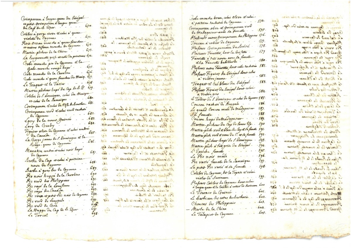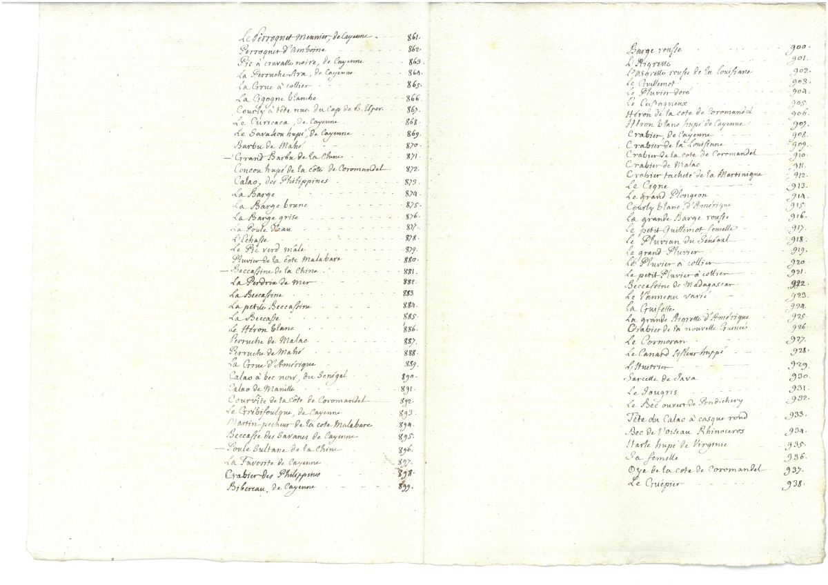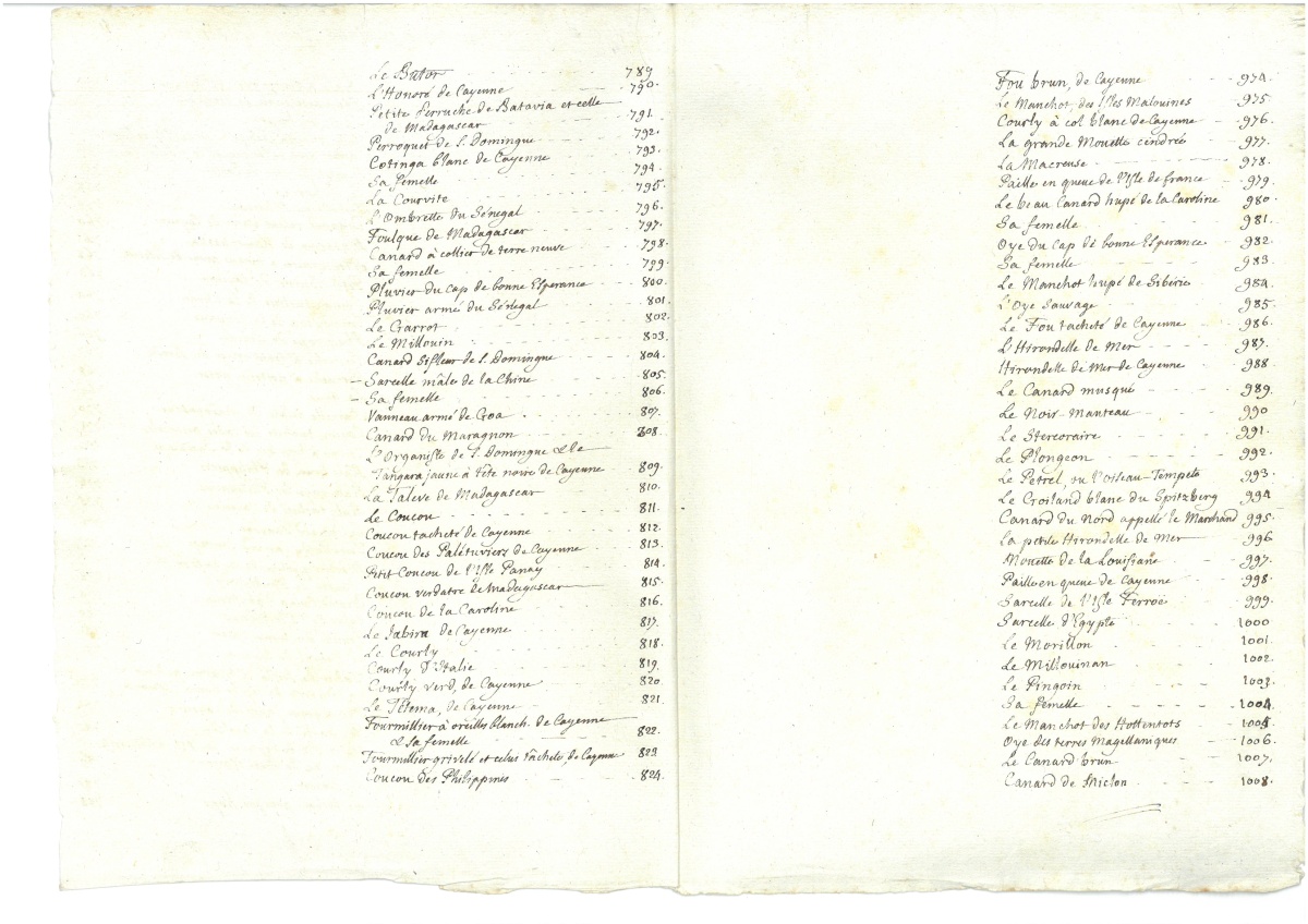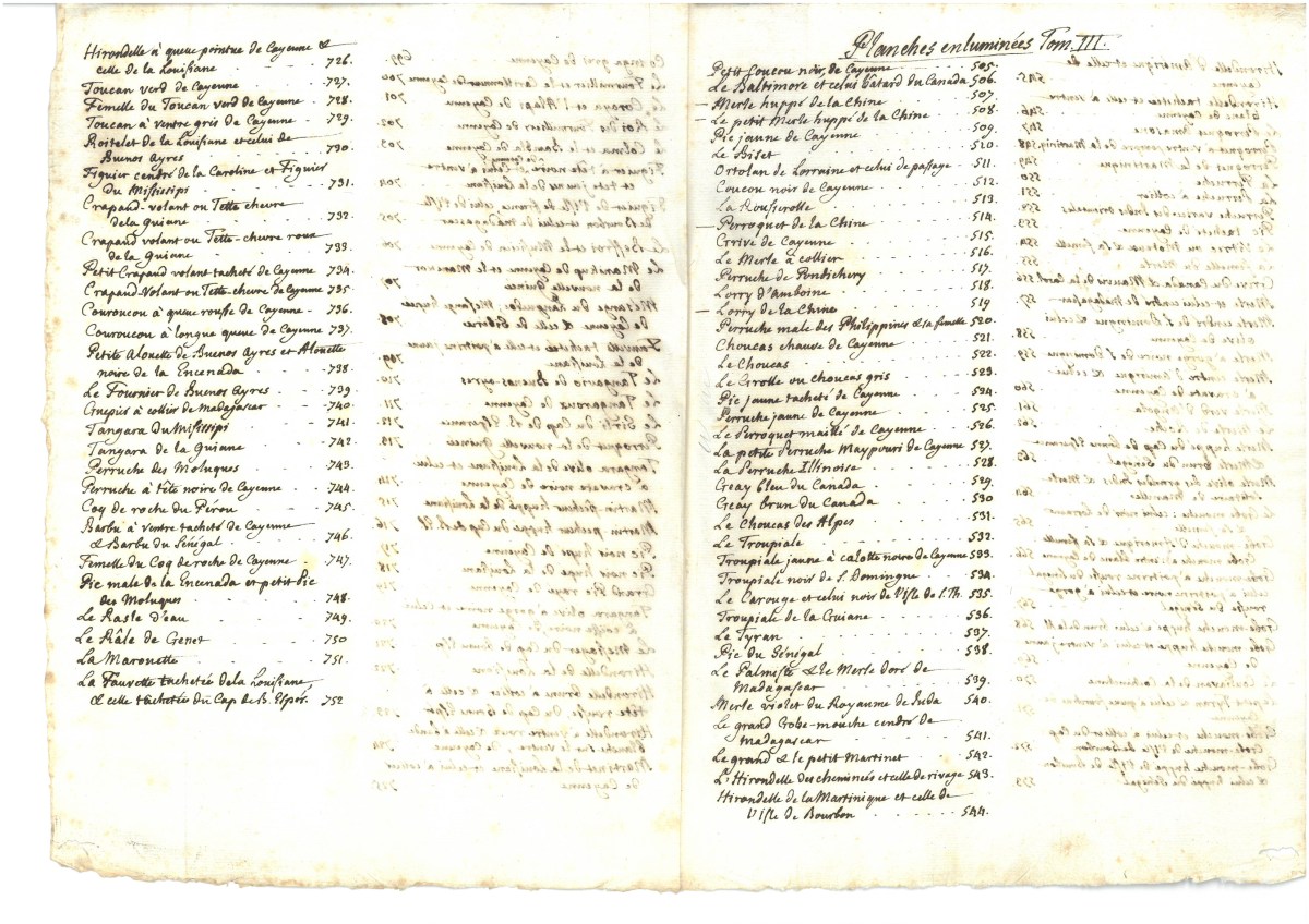 ), classées dans l'ordre de la numérotation. Il ne possède pas de titre, ayant été constitué à partir des 42 livraisons de 24 planches publiées de 1765 à 1783, sous la direction de Daubenton. Sont glissées dans trois des volumes des tables manuscrites, d'une écriture du XVIIIe siècle.