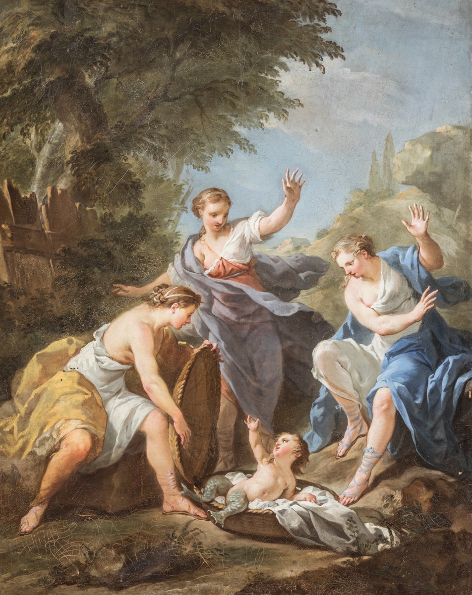 Étienne JEAURAT. Cecrops daughters discovering Erichtonios. Canvas. Signed "hallé" lower middle.