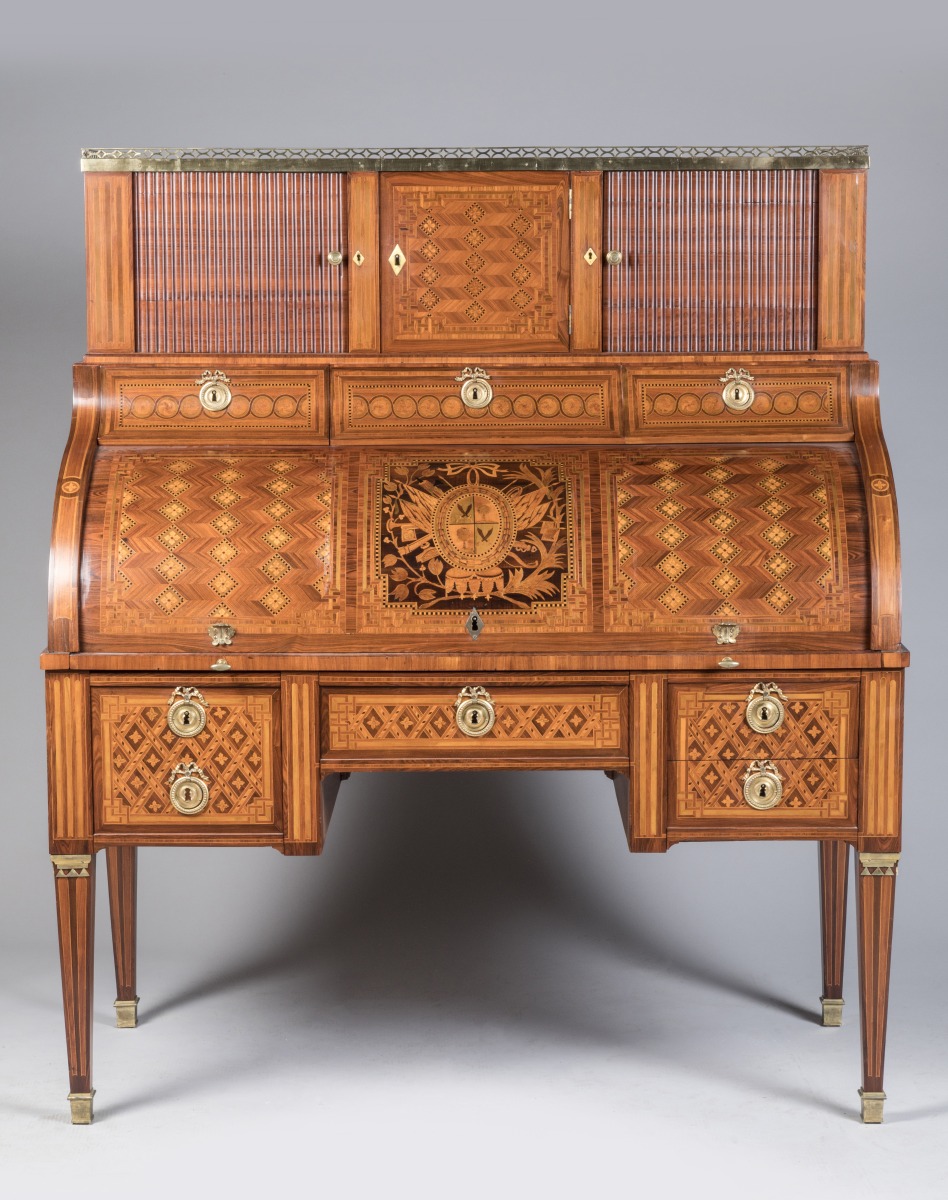 Photo: Bureau à cylindre en marqueterie de Teuné, aux armes du comte d'Artois pour Versailles. Collection S.M. la reine Elisabeth II, Château de Windsor.