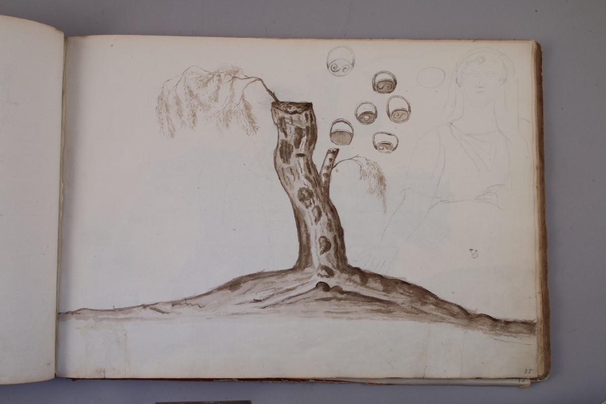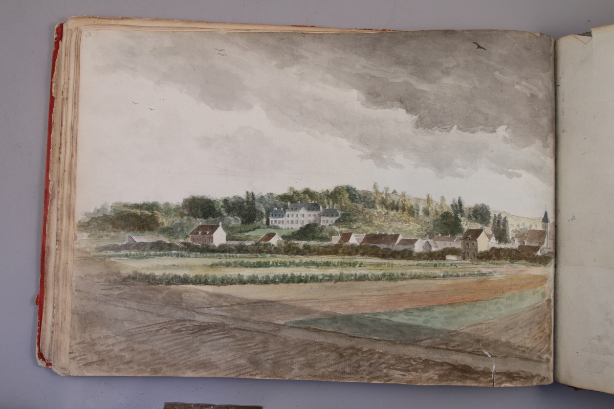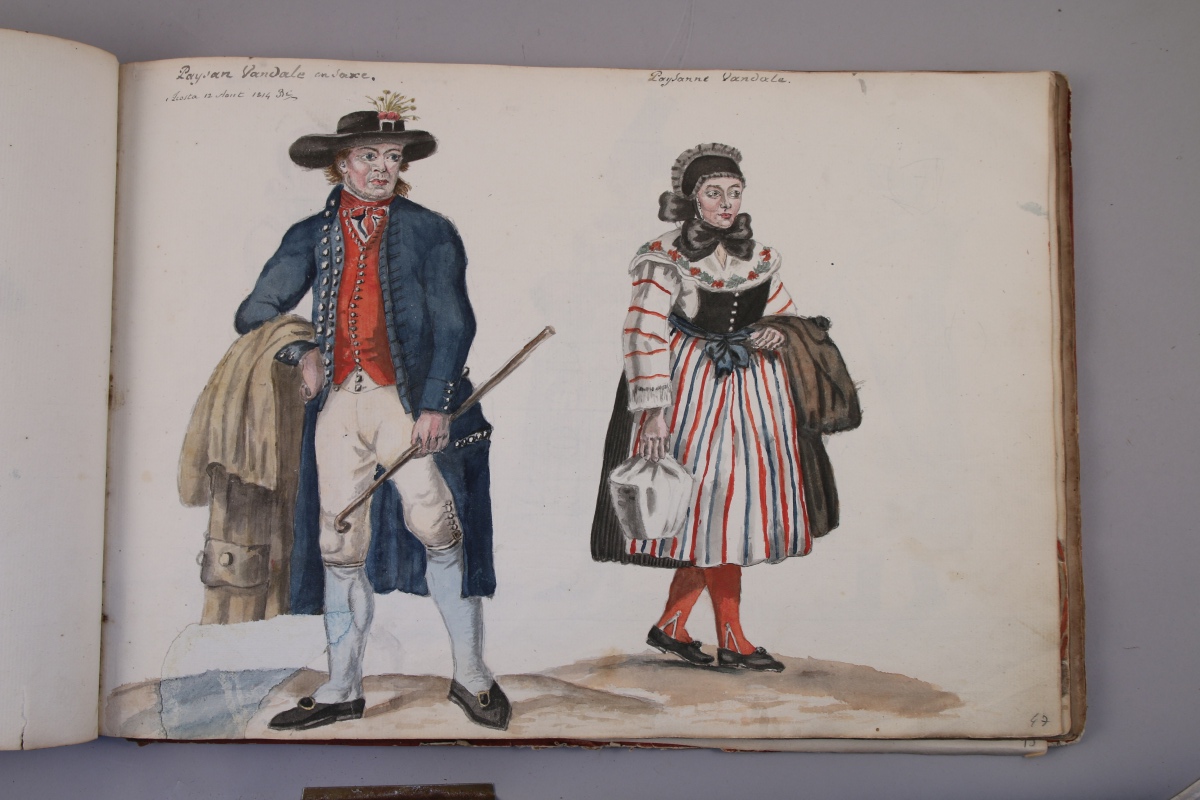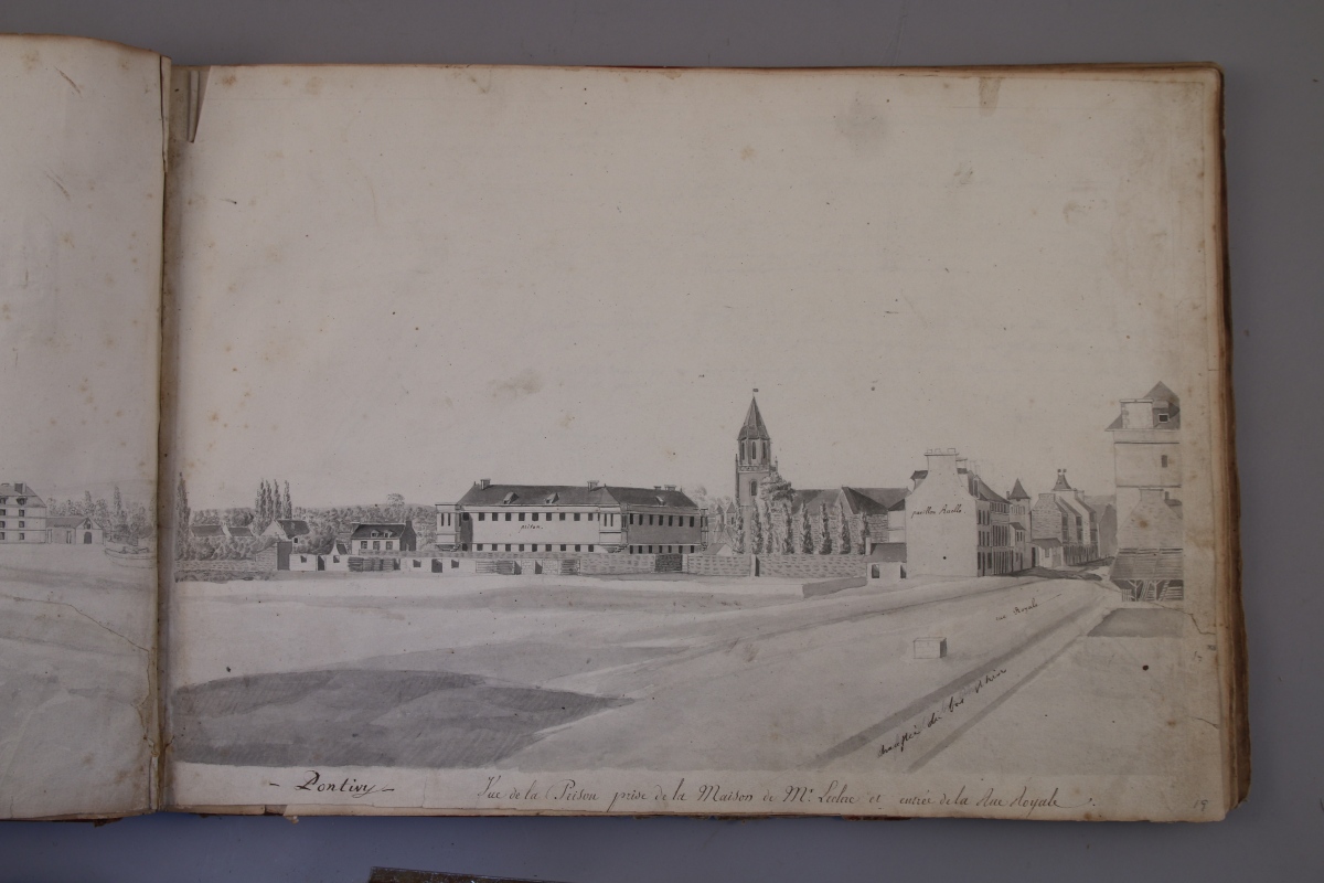 Ces dessins réunis sous forme d'un recueil relié et de manière non chronologique, ont été réalisés entre 1813 et 1820 en majorité par Boni de Castellane (excepté 4 dessins), lors de ses séjours dans les demeures familiales ou en garnison.