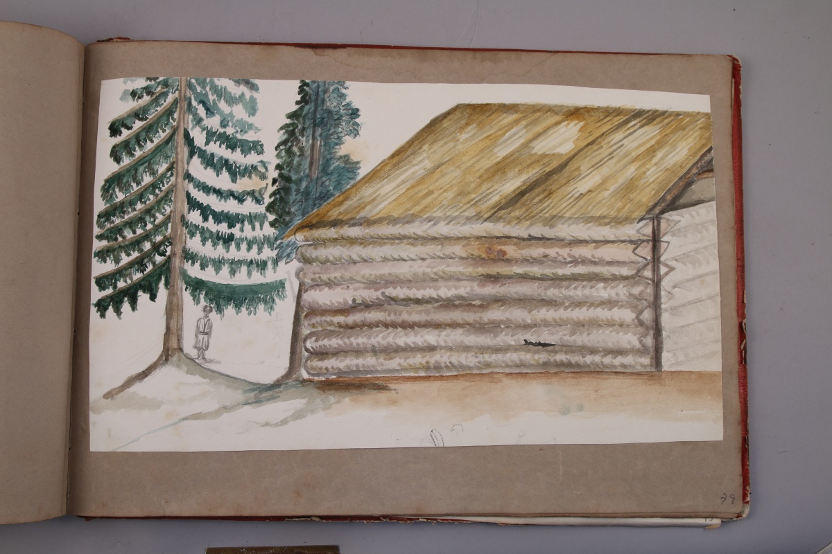 Album de format à l'italienne pleine reliure contenant 97 pages avec + de 50 dessins au lavis et rehauts aquarellés, ou à la mine ; la plupart légendés, datés et signés " B.C. ".