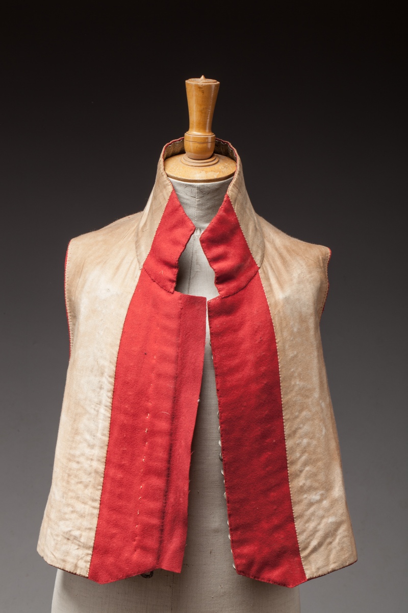 A scarlet wool OFFICER VEST from the NAPOLEON'S GUARD of HONNOR, between 1813 and 1814. It was probably owned by Boniface, Count of Castellane.