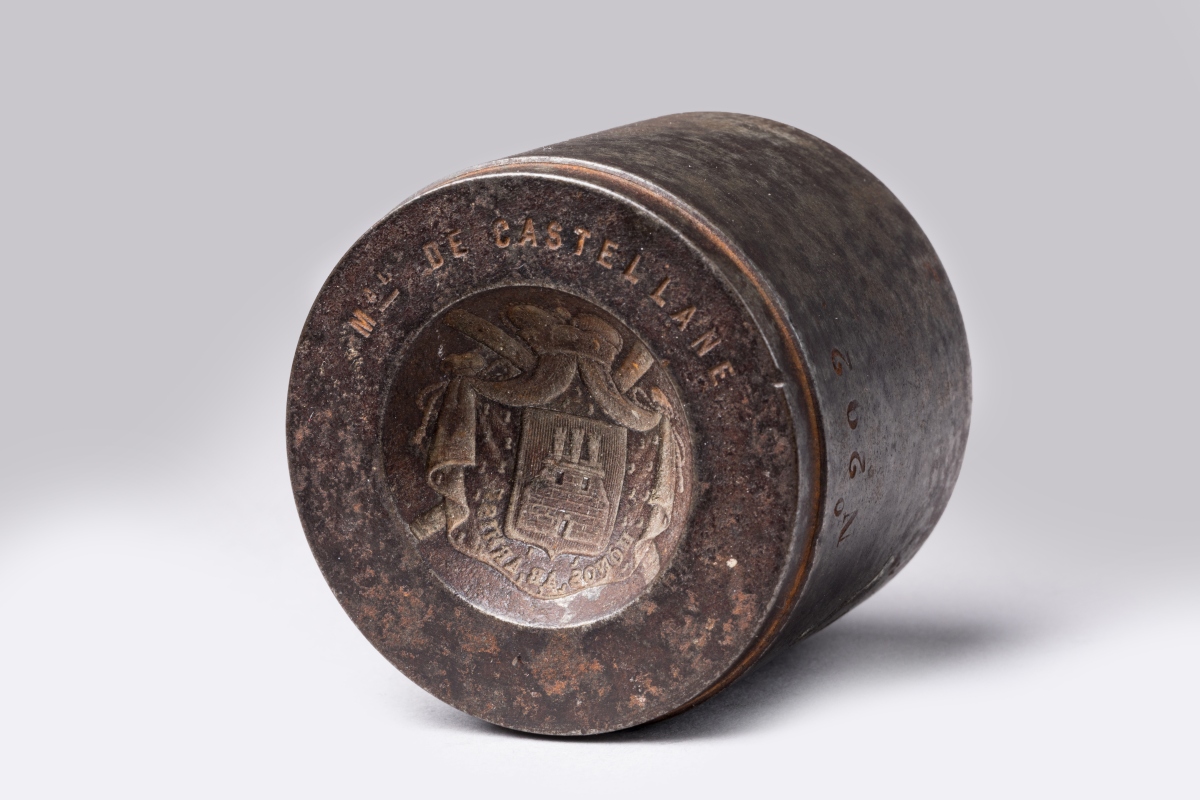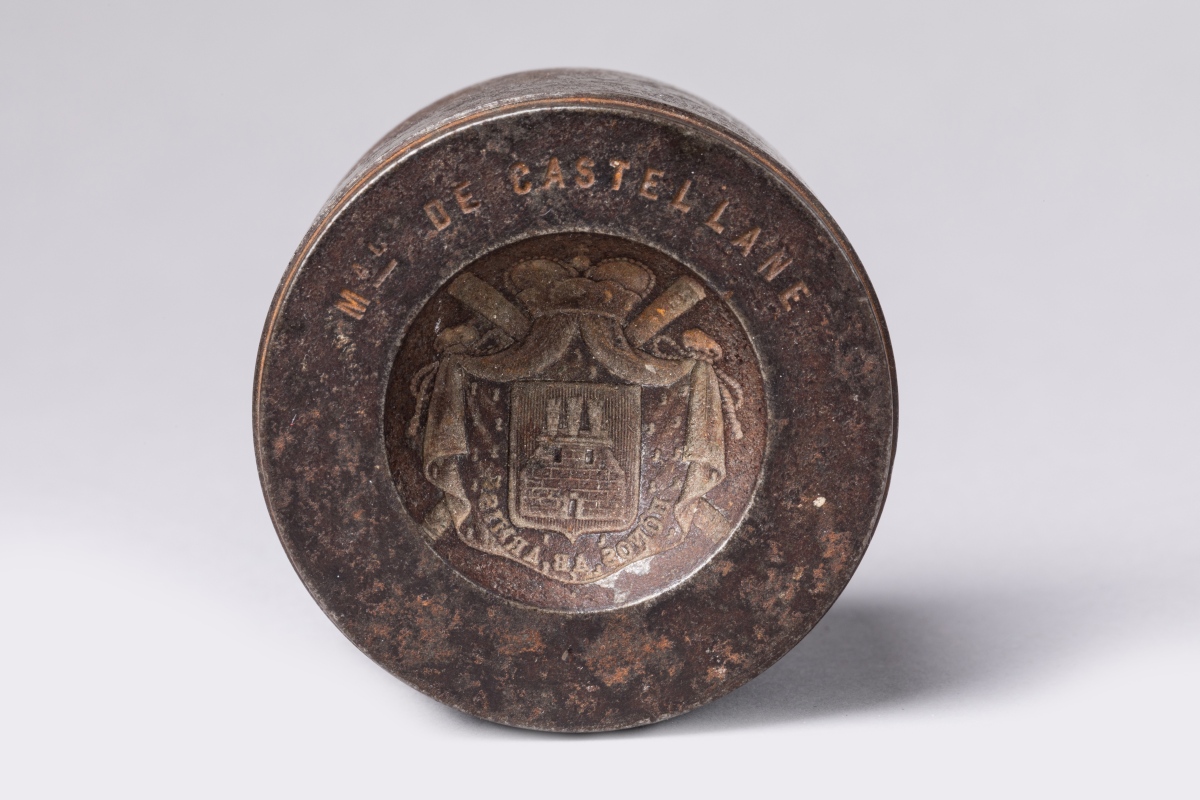 Boniface Comte de Castellane (1788- 1862) est élévé au grade de Maréchal le 2 décembre 1852. Cette matrice était problablement destinée à frapper des boutons de vénerie ou de livrée.