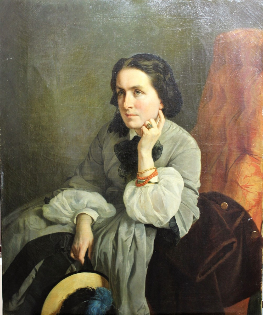 Attributed to Alfred DE DREUX. Portrait of Madam de Fouquières. Canvas.