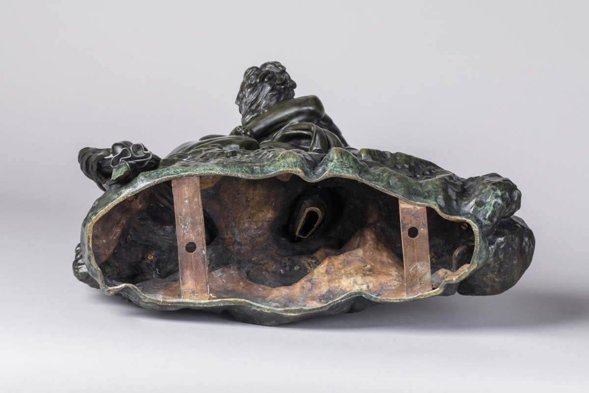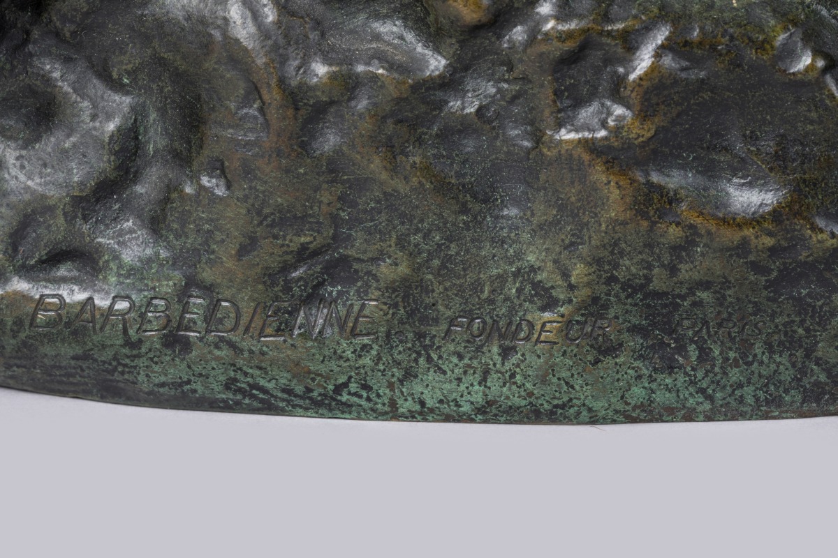 Bronze à patine verte et noire, Signé: "Barye" sur le rocher à deux reprises; cachet "F. Barbedienne Fondeur Paris".