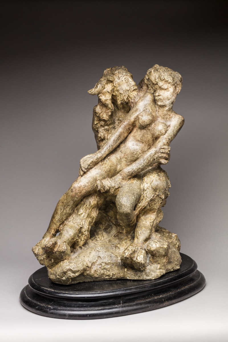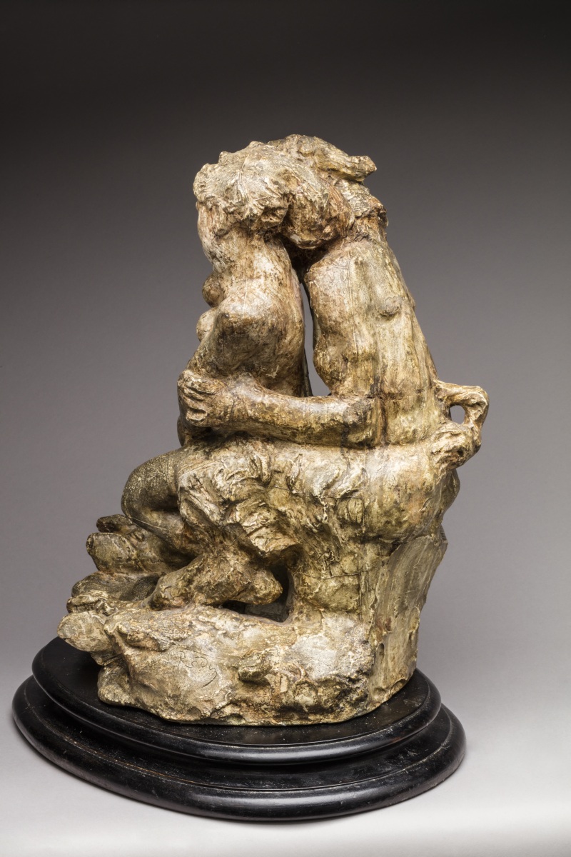 Auguste RODIN. Faun and Nymph, circa 1886. Patinated plaster signed and dedicated: "A Ben(jamin)