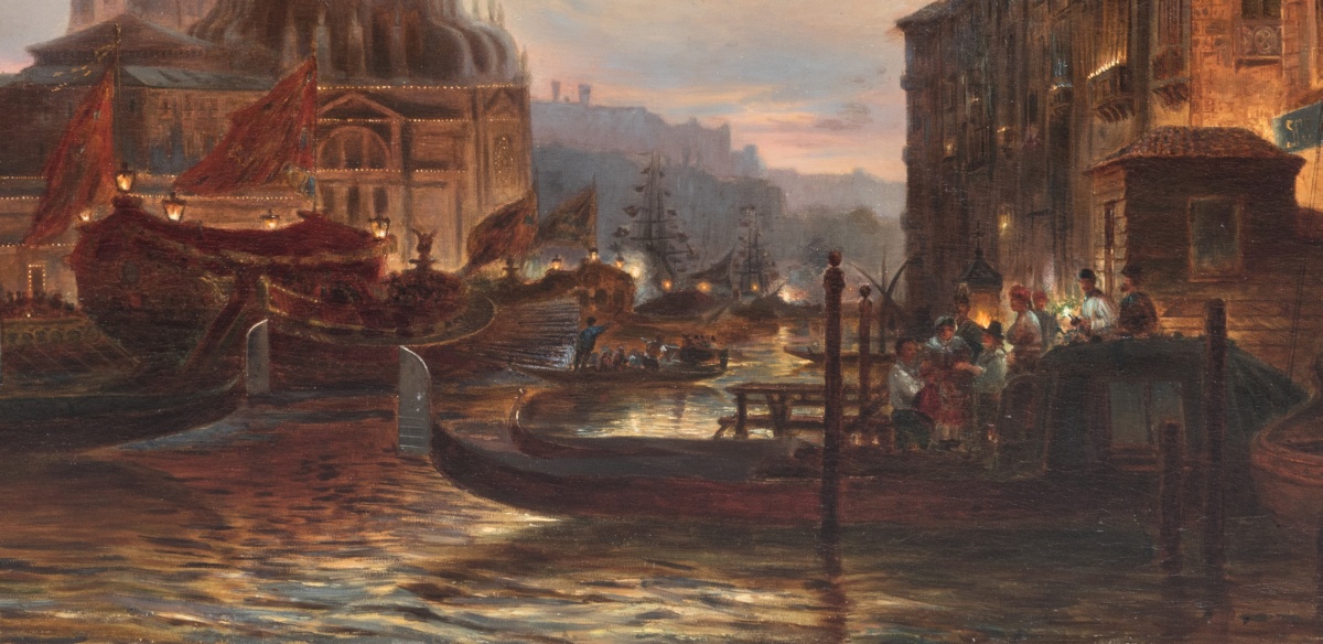 Venise, célébrations au crépuscule à Santa Maria della Salute, c. 1867.