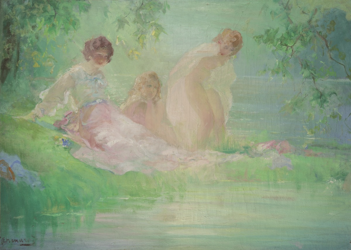 Pavel Dmitrievic SMAROV. Baigneuses on lake edge. Canvas. Signed lower left.