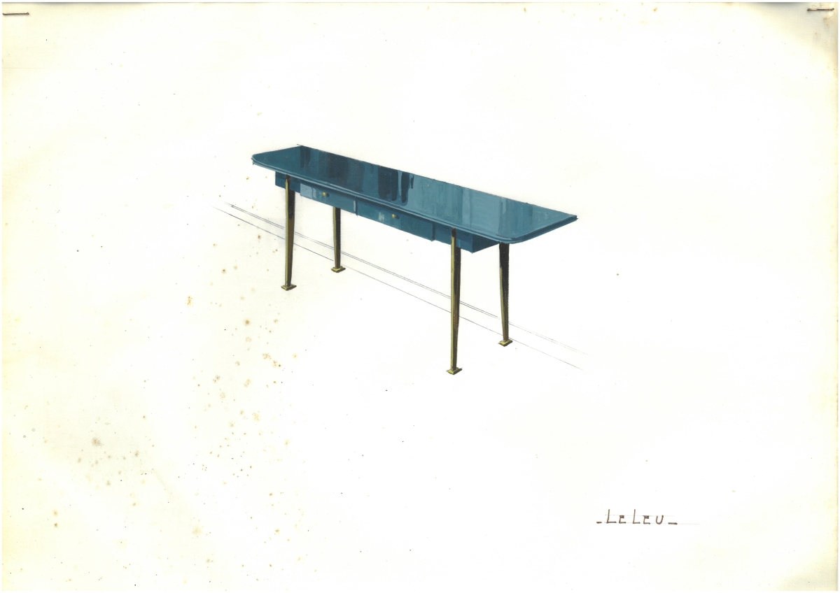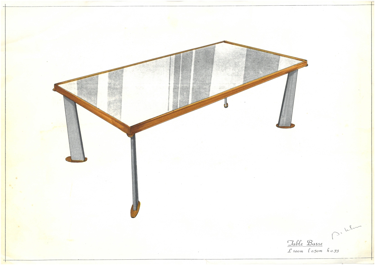 Deux modèles: table basse et console, crayon et gouache sur feuille 31 x 42 cm. (mouillures).