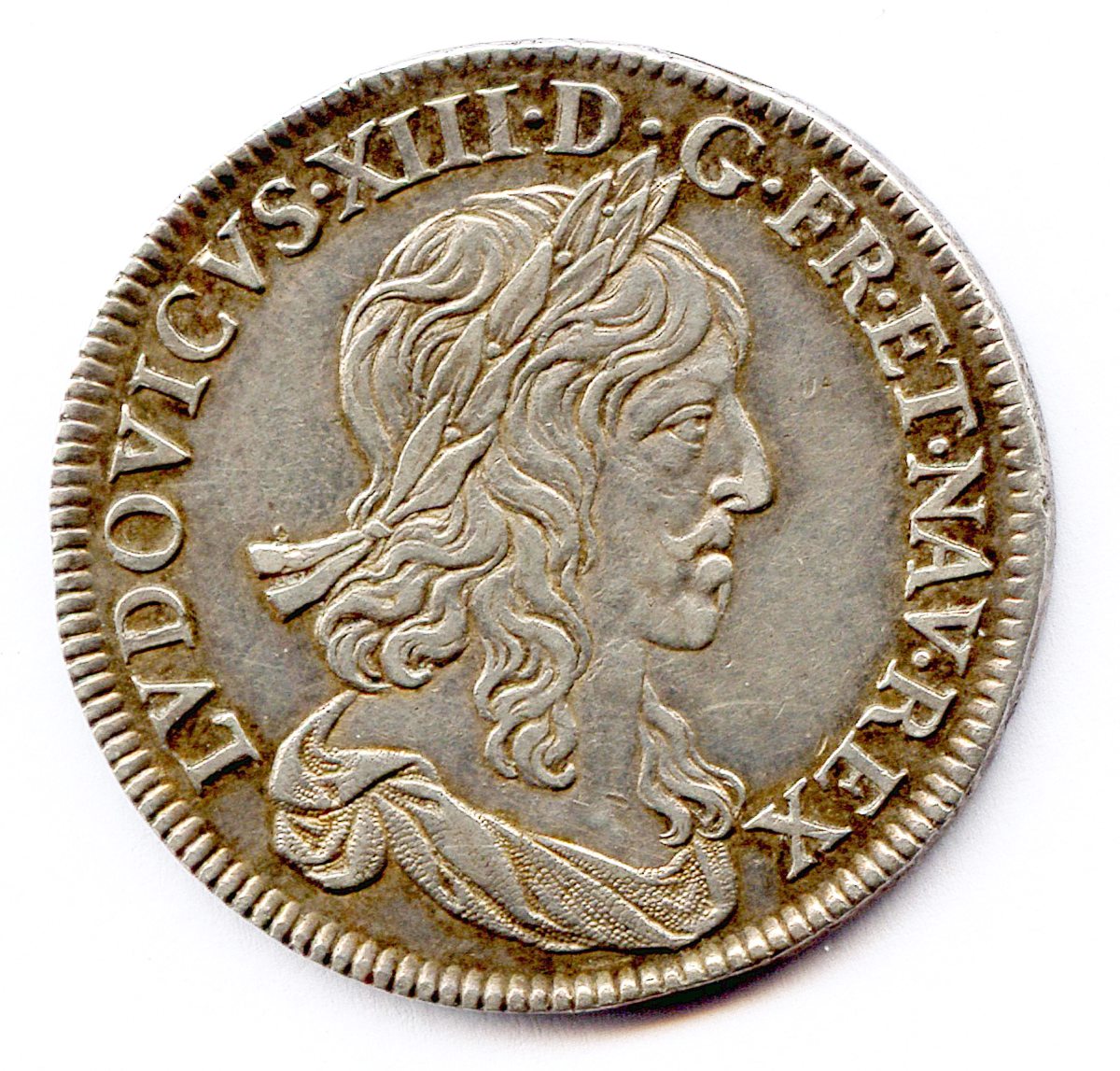 Son buste drapé à droite, la tête laurée. R/. Ecu de France couronné. Millésime en fin de légende et lettre datelier à la pointe de lécu. Rose initiale.