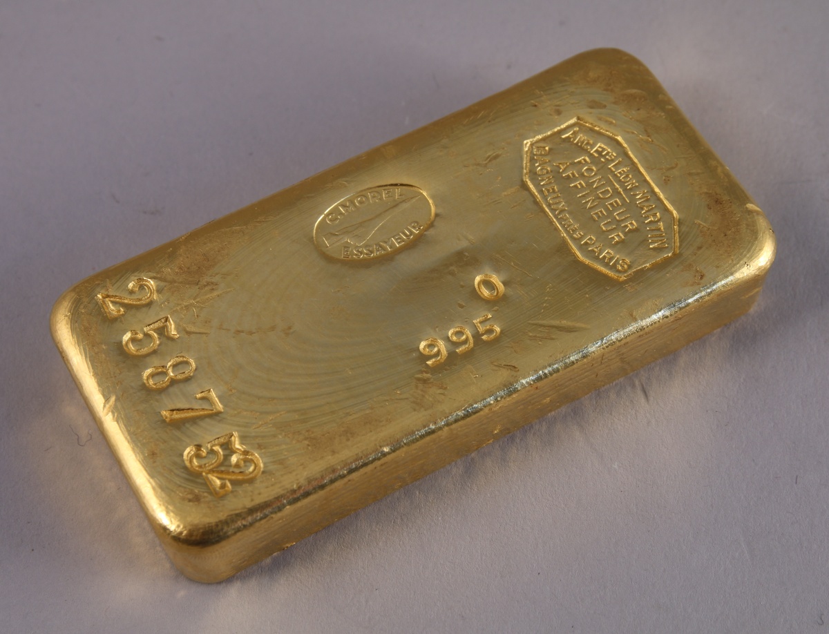 FRANCE - LINGOT OR, 995 g. Léon Martin fondeur à Bagneux, G. Morel essayeur.