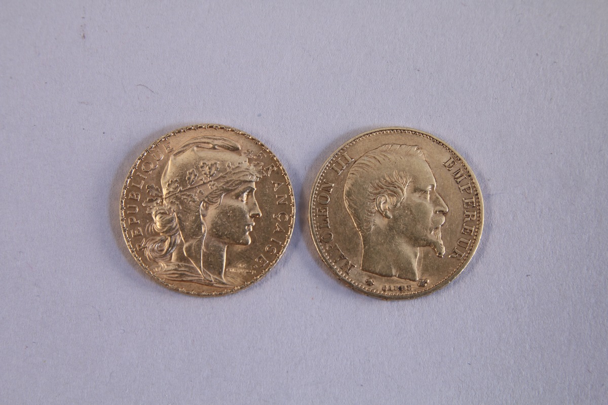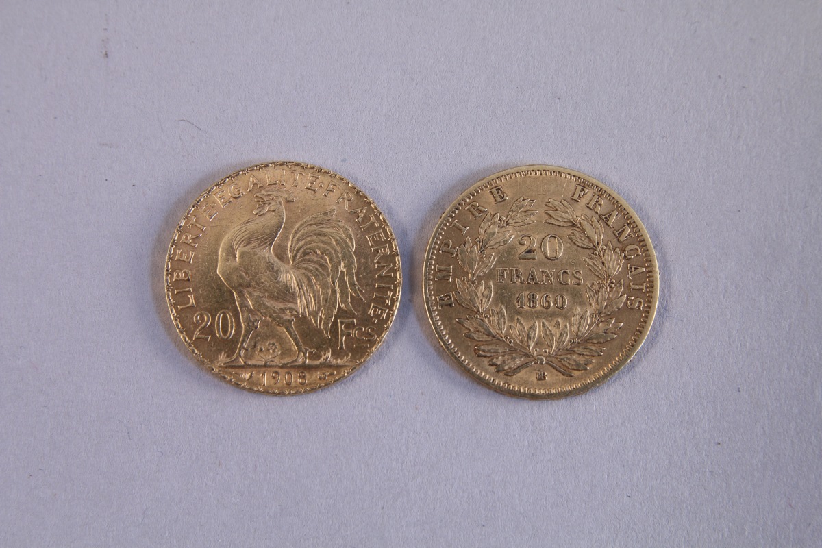 FRANCE. DEUX PIÈCES de 20F OR: