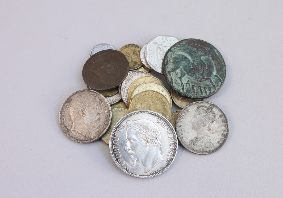 Petite RÉUNION de MONNAIES dont Napoléon III (lauré), 5F argent, 1868 et deux pièces de 1F argent.