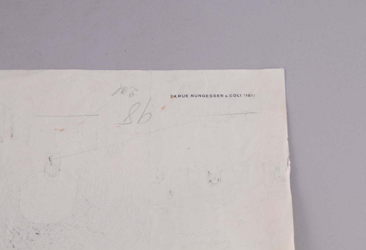 Croquis à l'encre daté octobre 1910, réalisé au verso du papier à en-tête de son atelier du 24, rue Nungesser & Coli (16e).
