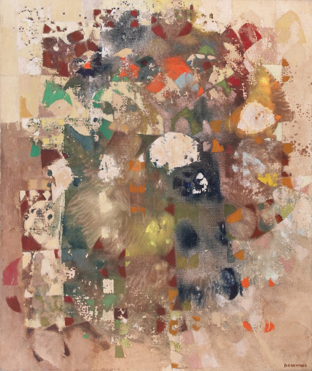 "Joe Downing est l'un des plus authentiques représentants de l'abstraction " libre " d'après-guerre. À travers un fourmillement de formes, devenues de plus en plus lumineuses avec le temps, il développe une poétique très personnelle de l'espace, du rythme et de la couleur."