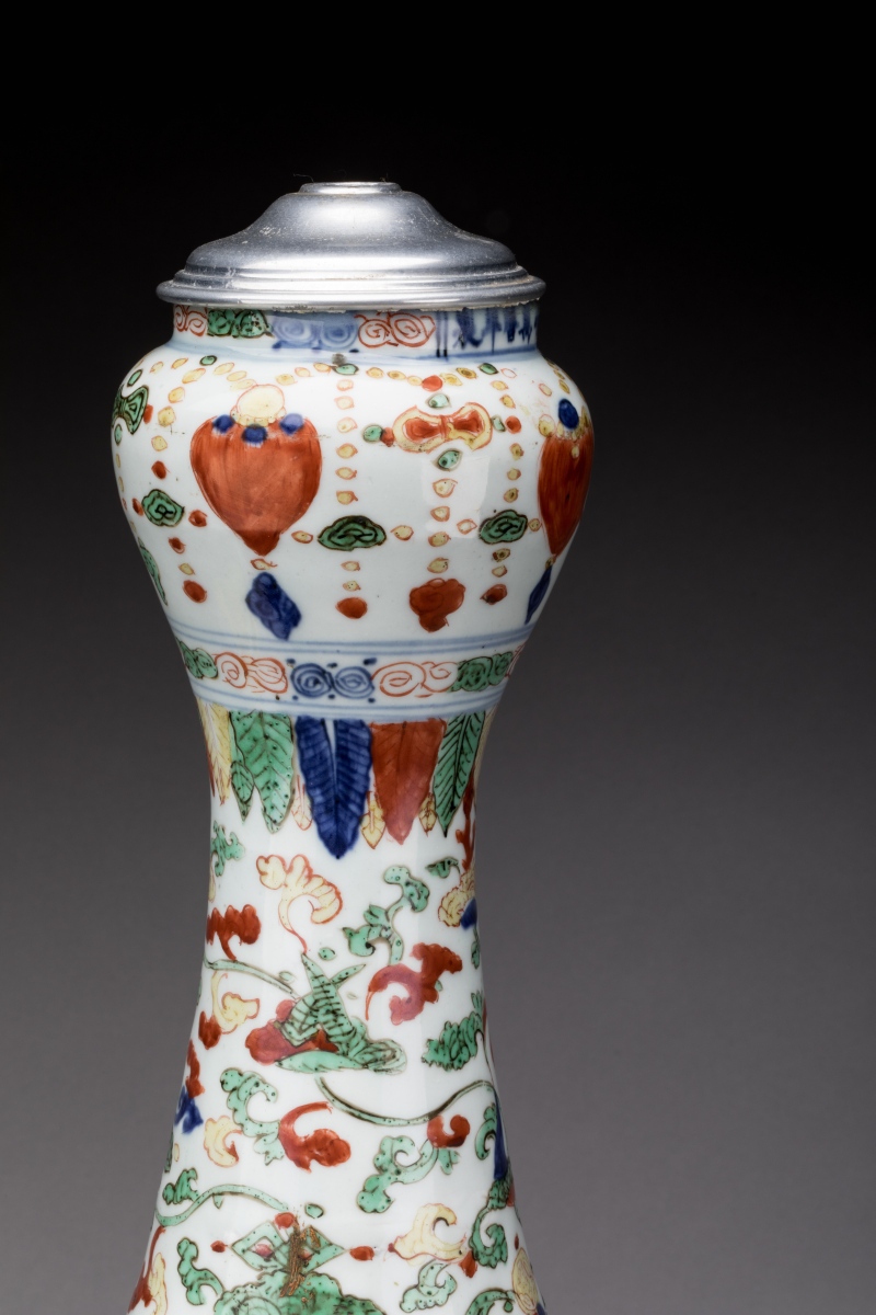 CHINA. WANLI period. A "suan tou ping" porcelain VASE decorated with blue and "wucai" polychrome enamels.
