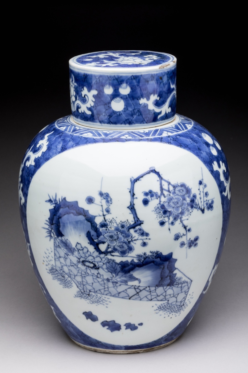 CHINA, KANGXI period. A porcelain GINGER POT decorated with blue enamel.