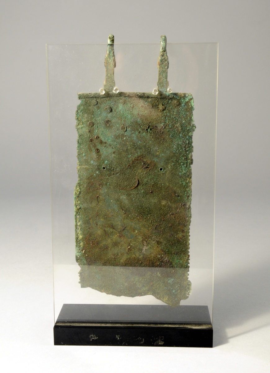 An Etrurian laminated bronze FERMAIL. 3rd-4th centuries B.C.