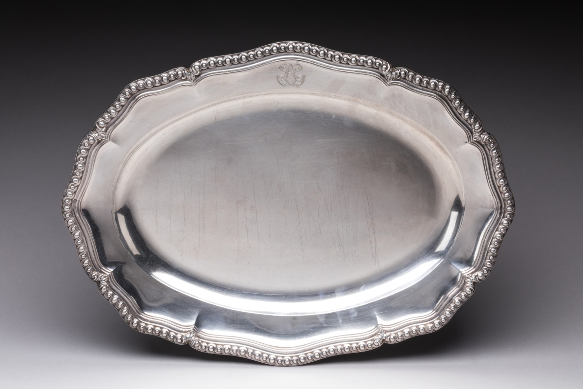 PARIS. ODIOT. PLAT de forme ovale en argent.
