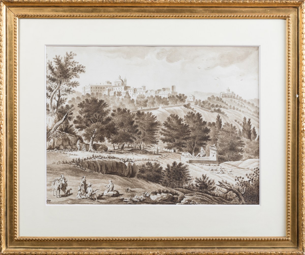 Jean Baptiste TIERCE. A study for the trip in Italy of the Marquis de Sade. Paintbrush. Wash drawing on a graphite sketch. Conserved by the descendants of the Marquis de Sade until 1997.
