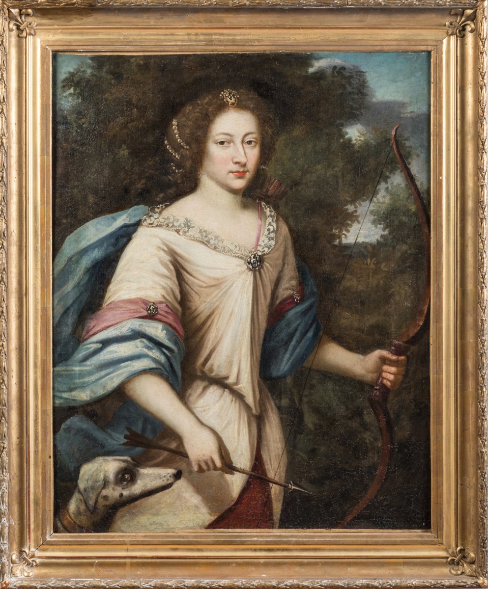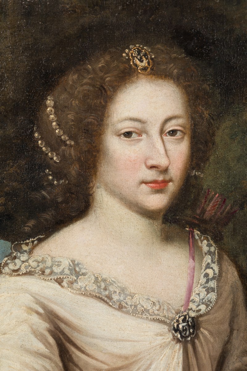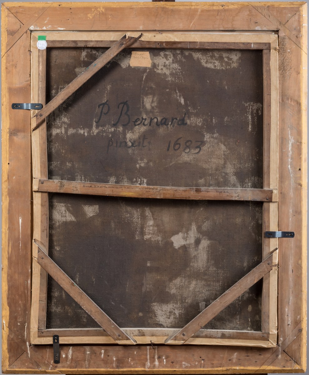 Au revers, sur le châssis, une inscription à la plume: "Henriette de Malortie, femme en 1682 de messire Etienne Le Petit Er Sgr de Longueuil et en 1689 de messire Cyrus Anthoine de Briqueville marquis de Briqueville / Peinte en 1683".
