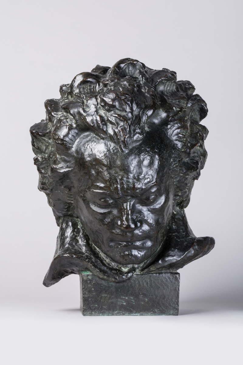 Léon MOURADOFF. Head of Luwig van Beethoven. Bronze with black patina. Signed, located "Annecy" and numbered 3/4. Stamped with the Susse Frères foundry mark.