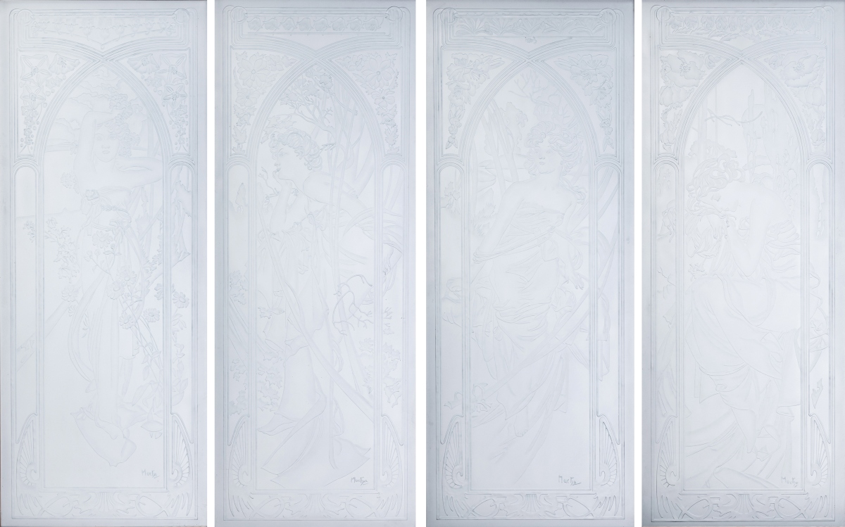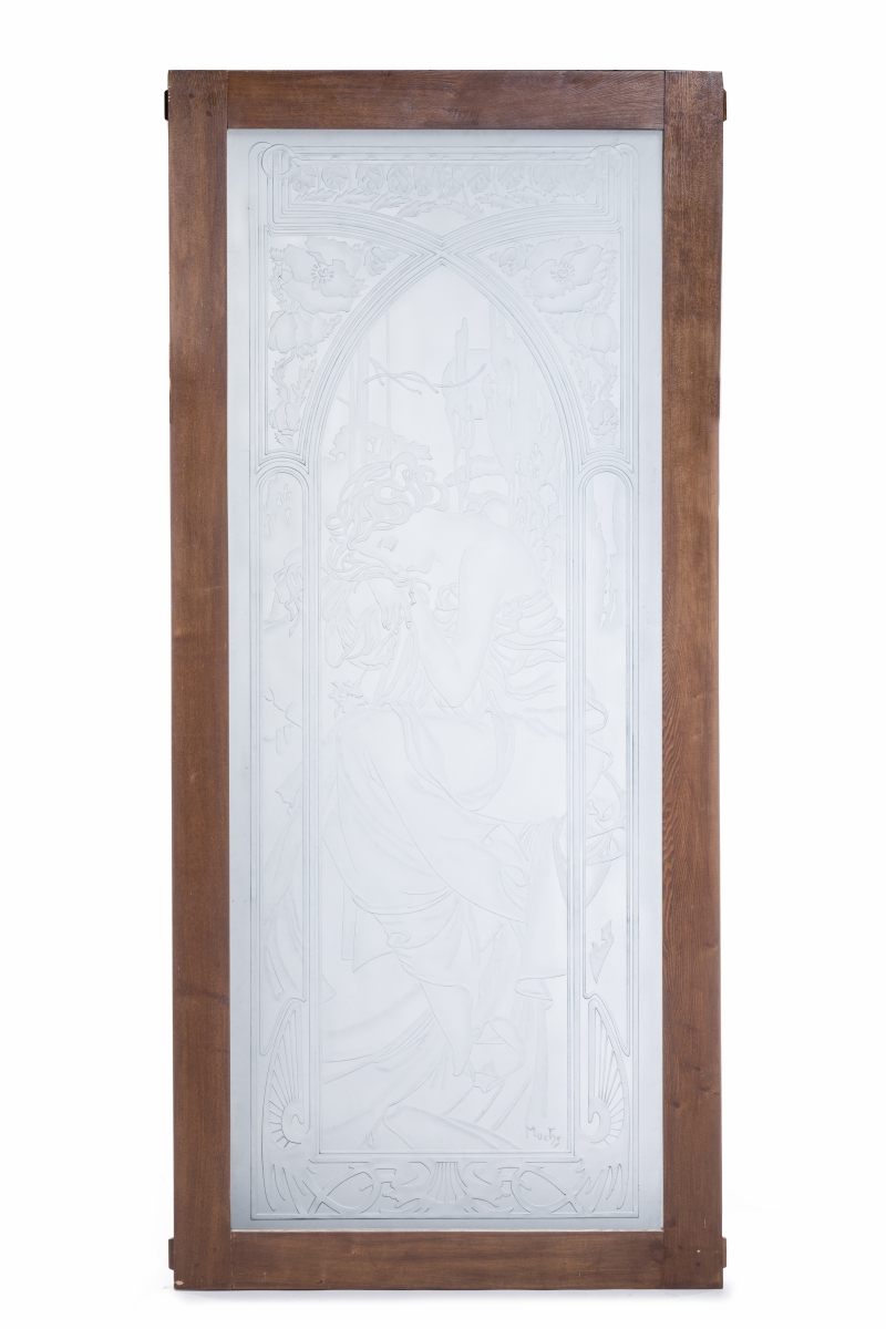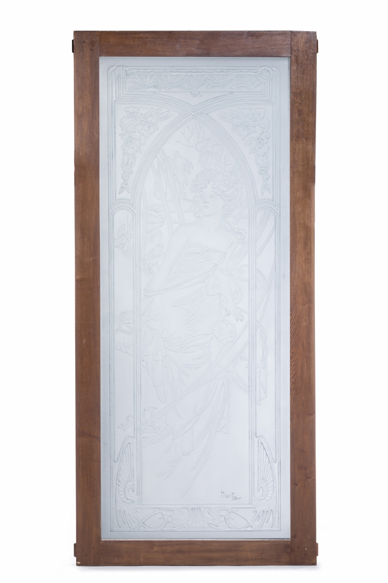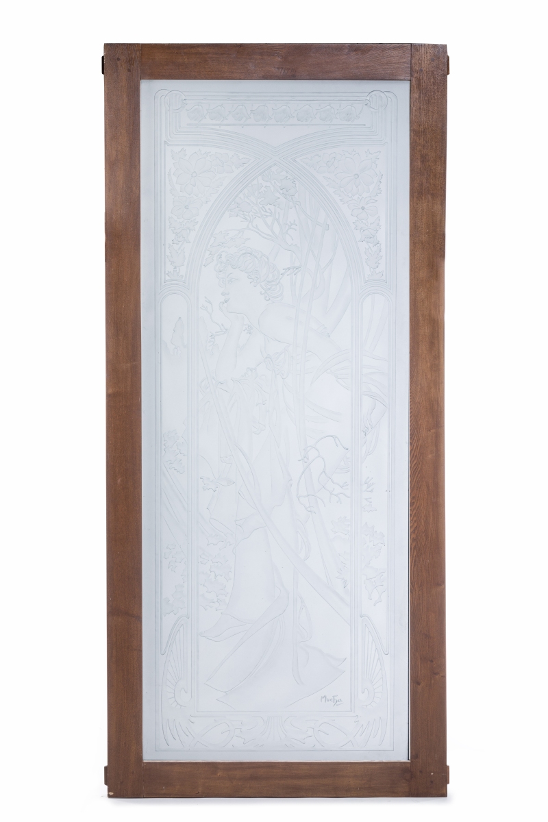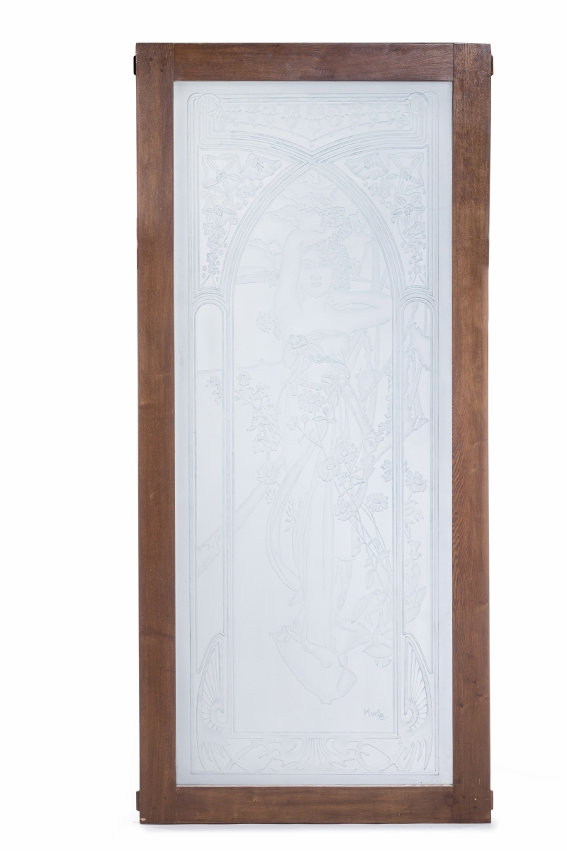 After Alphonse MUCHA. The daylight hours. Four engraved glass panels. Signed.