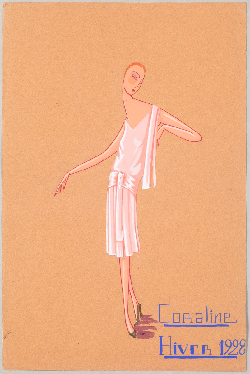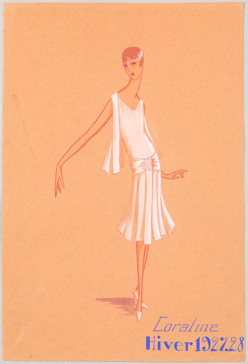 Mine de plomb, gouache sur papier coloré abricot, datée "1927", numéro "73" biffé en haut à droite.
