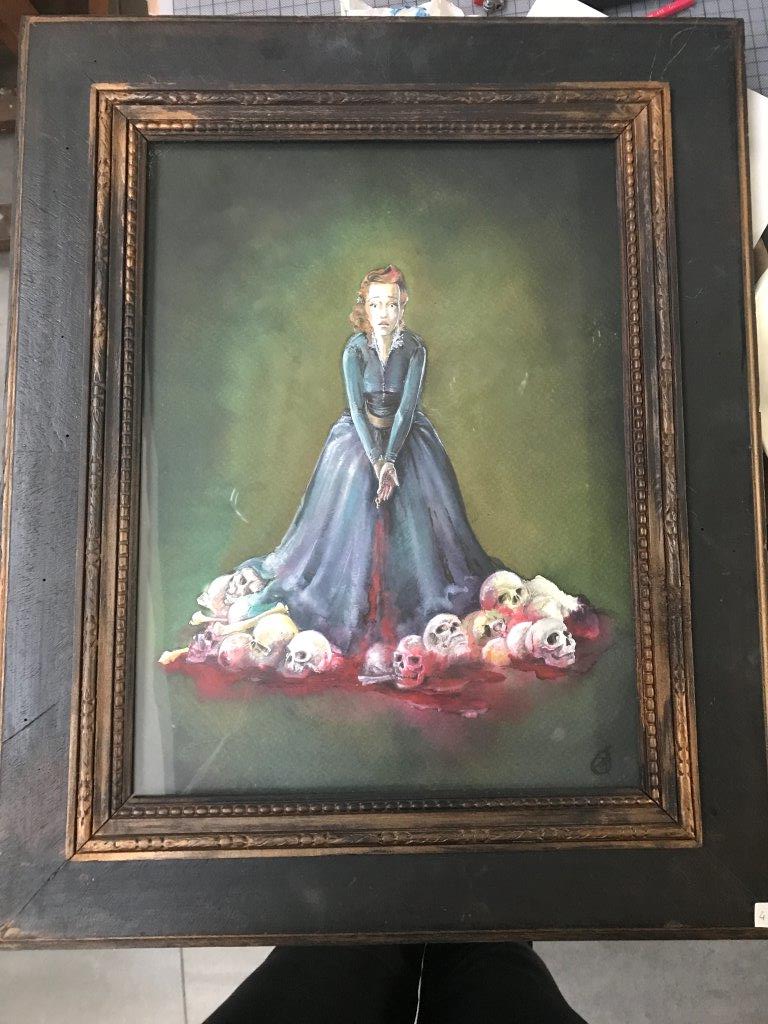 Encre signée sur papier avec rehaut de pastel réalisé en 2016 d'après le conte Barbe Bleu.