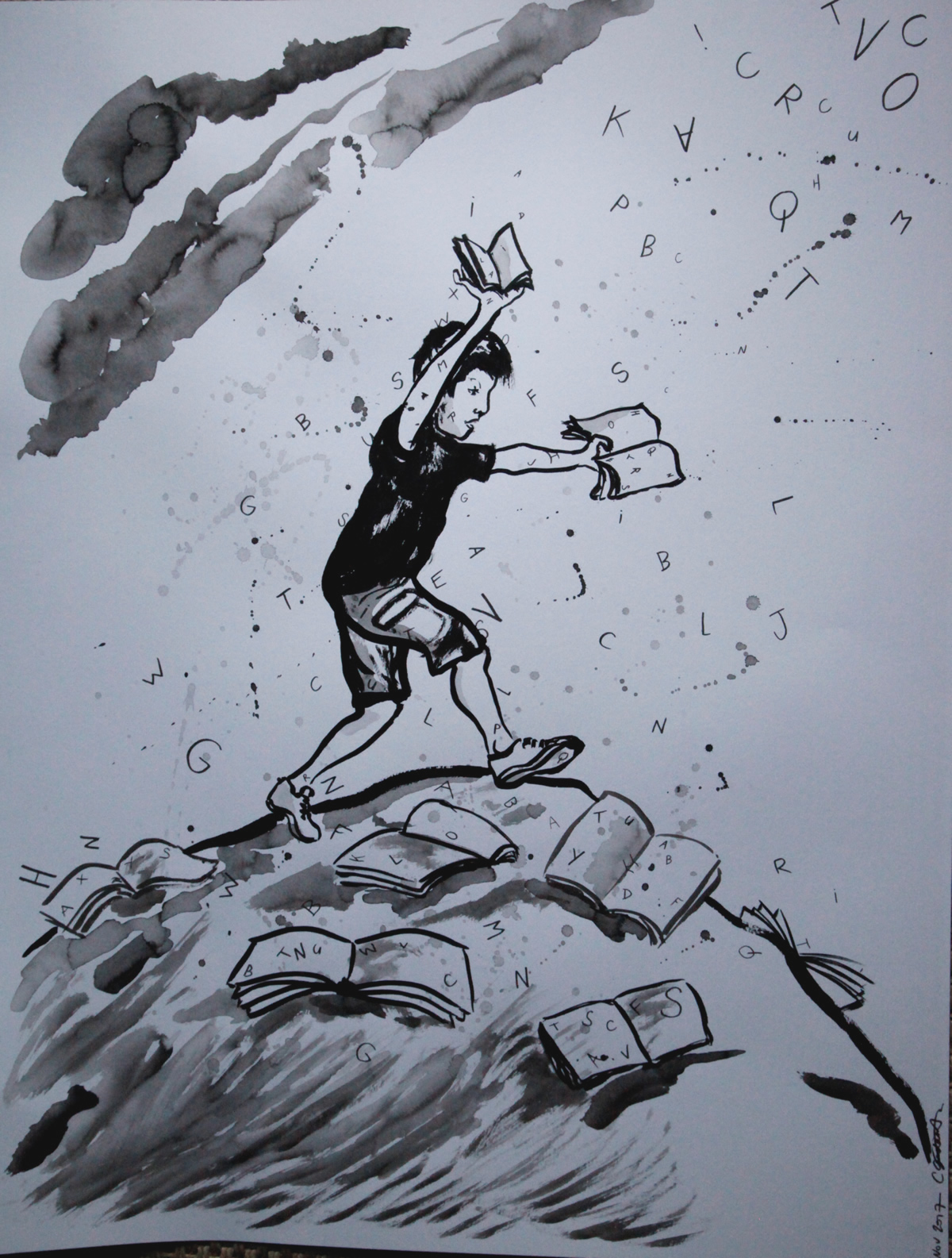 Dessin réalisé pour la vente aux enchères sur le thème de la lutte contre l'illéstrisme.