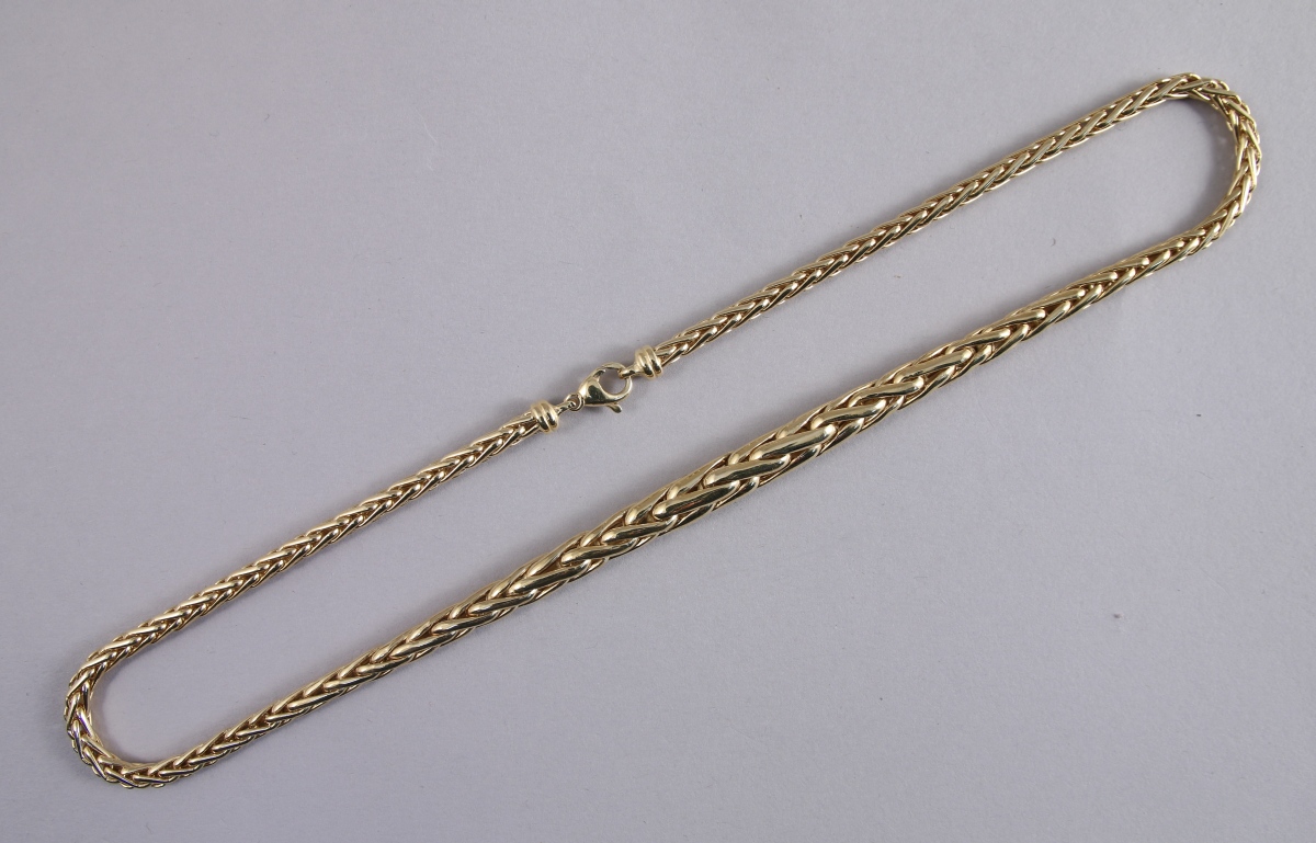 COLLIER en or jaune 18K. Maille palmier en chute. Poinçon tête d'aigle.