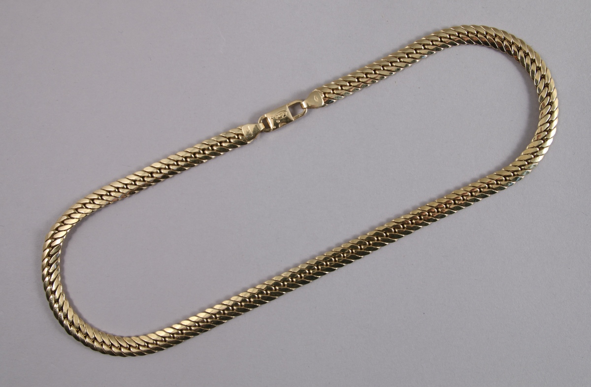 COLLIER en or jaune 18K. Maille anglaise. Travail italien.