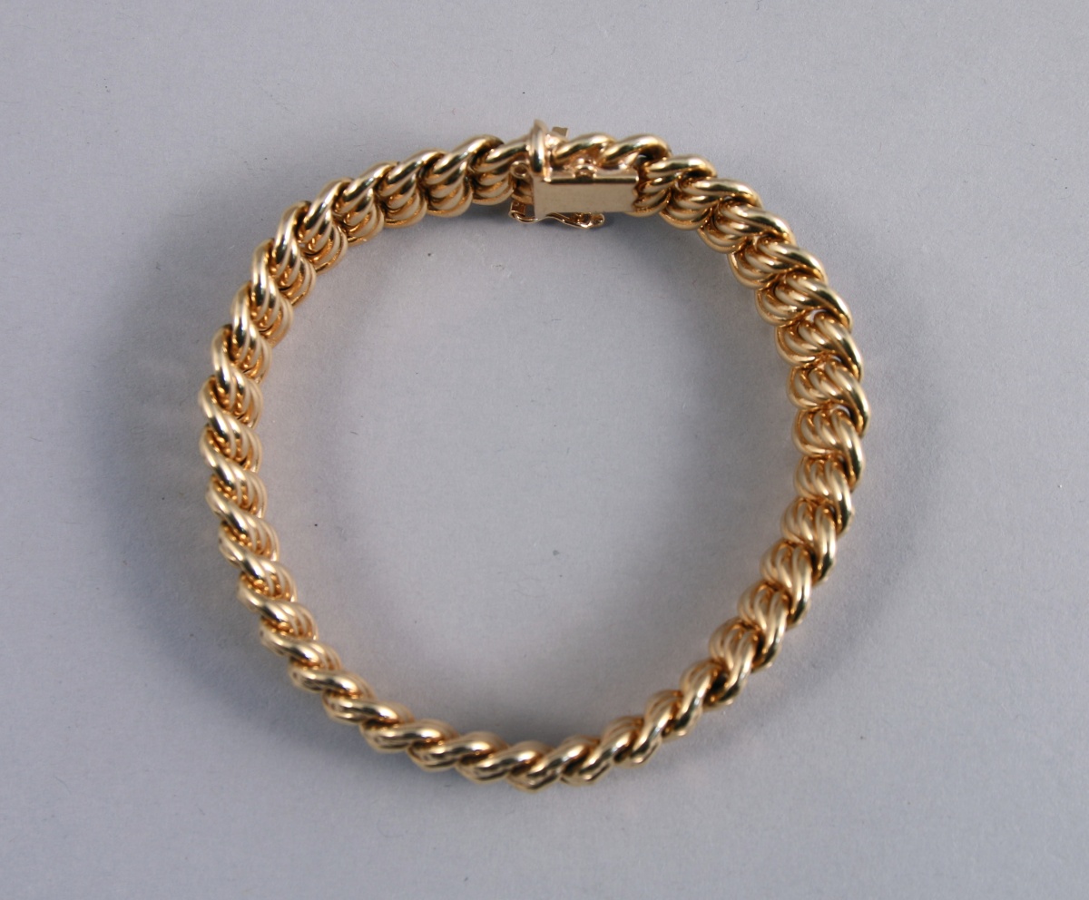 BRACELET en or jaune 18K à mailles souples tressées.