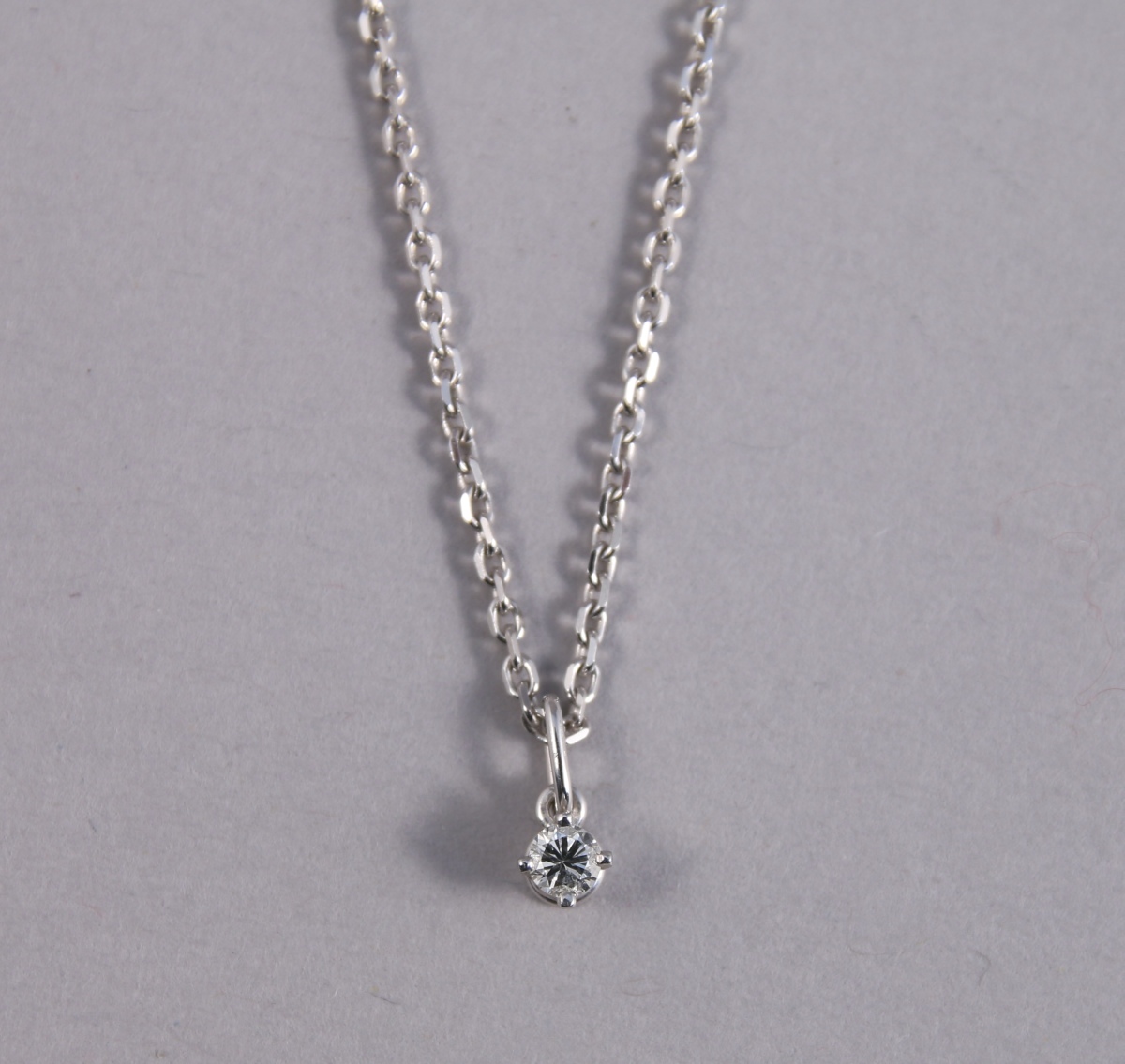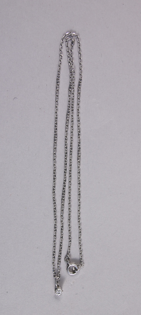 PENDENTIF et sa CHAÎNE à maille forçat en platine (?) orné d'un petit DIAMANT d'environ 0.1 ct.