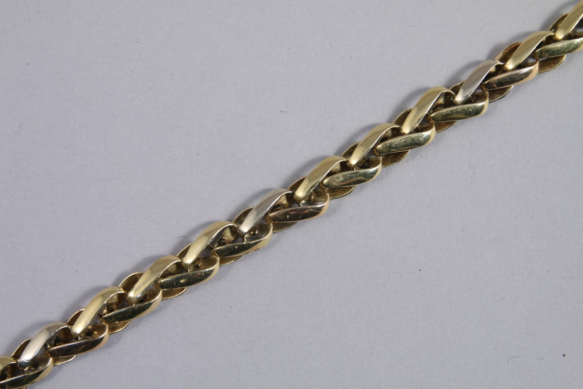 COLLIER à maille articulée trois ors: jaune, gris et rose 18K. Travail étranger.