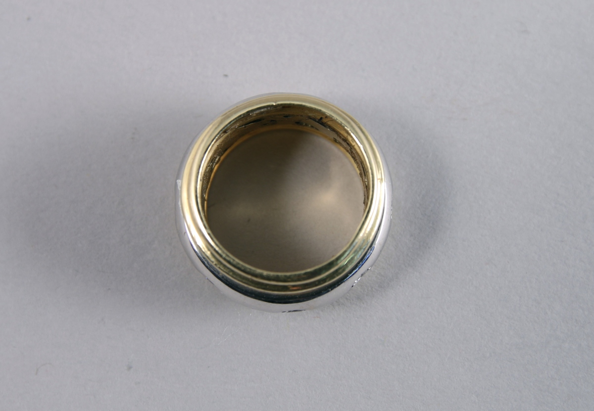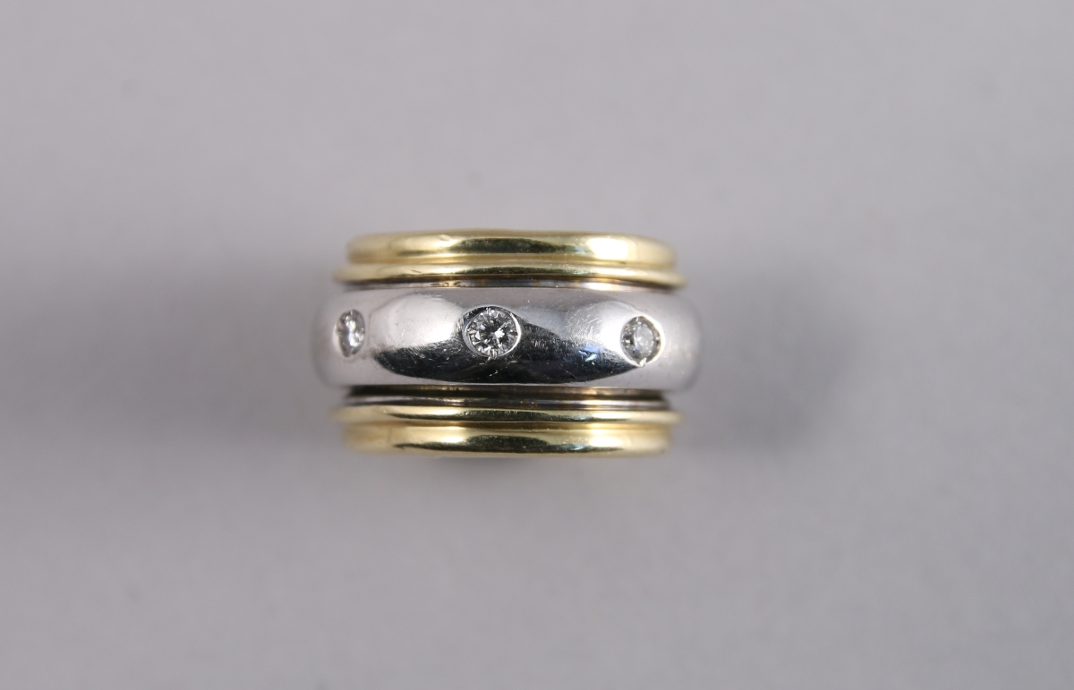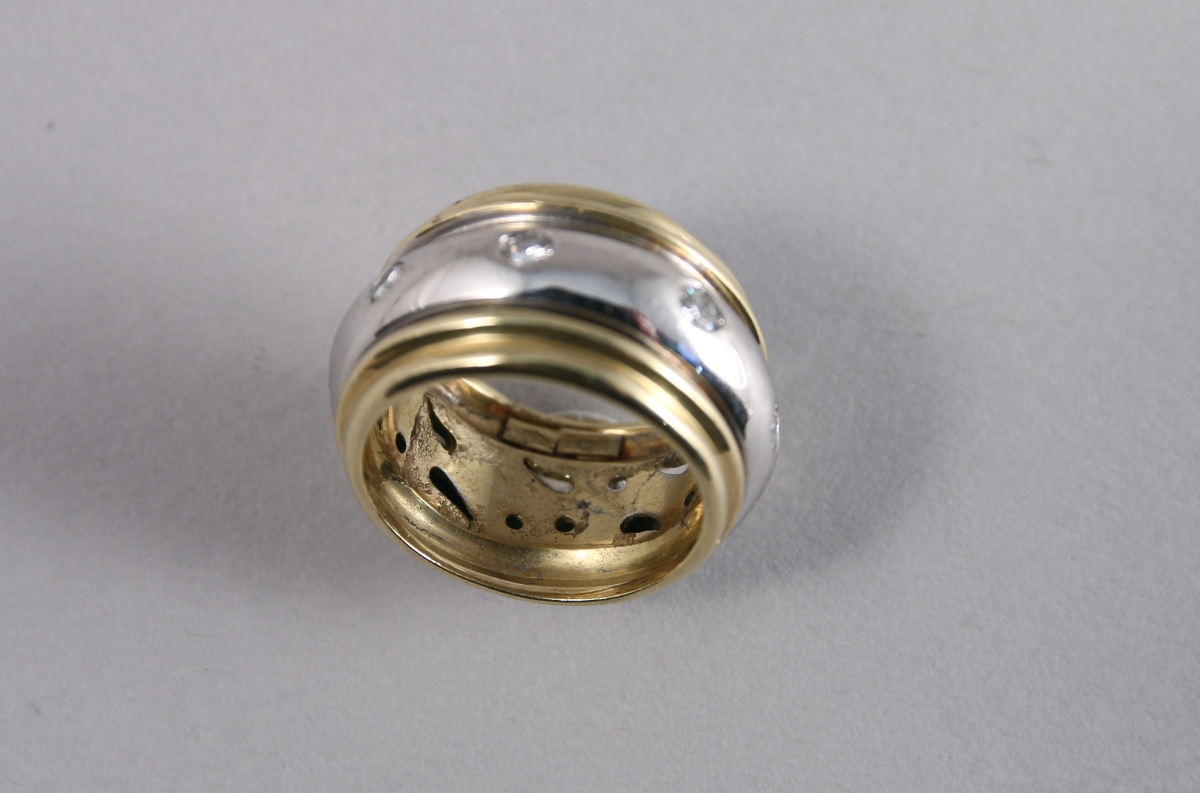 BAGUE en or 18K composée d'une base en or jaune accueillant un anneau mobile en or gris serti de 8 petits DIAMANTS.