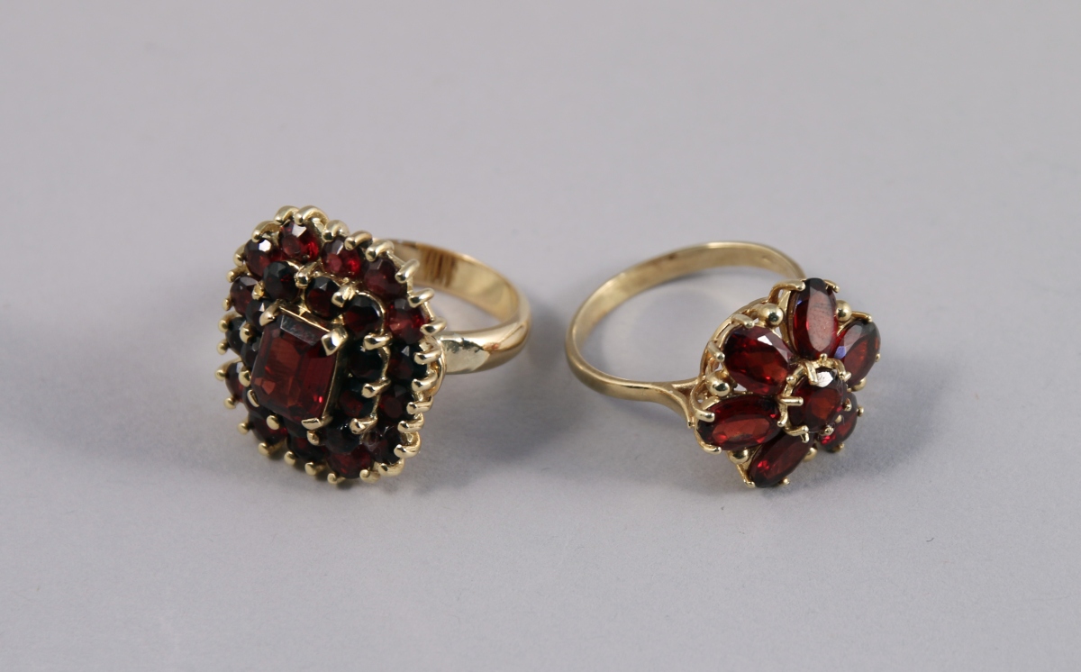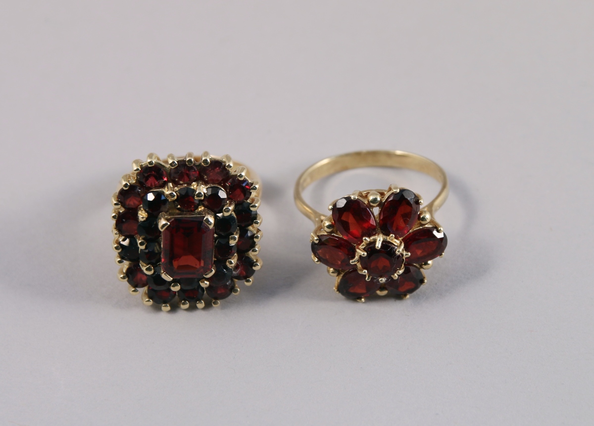 DEUX BAGUES en or 18K serties de GRENATS: