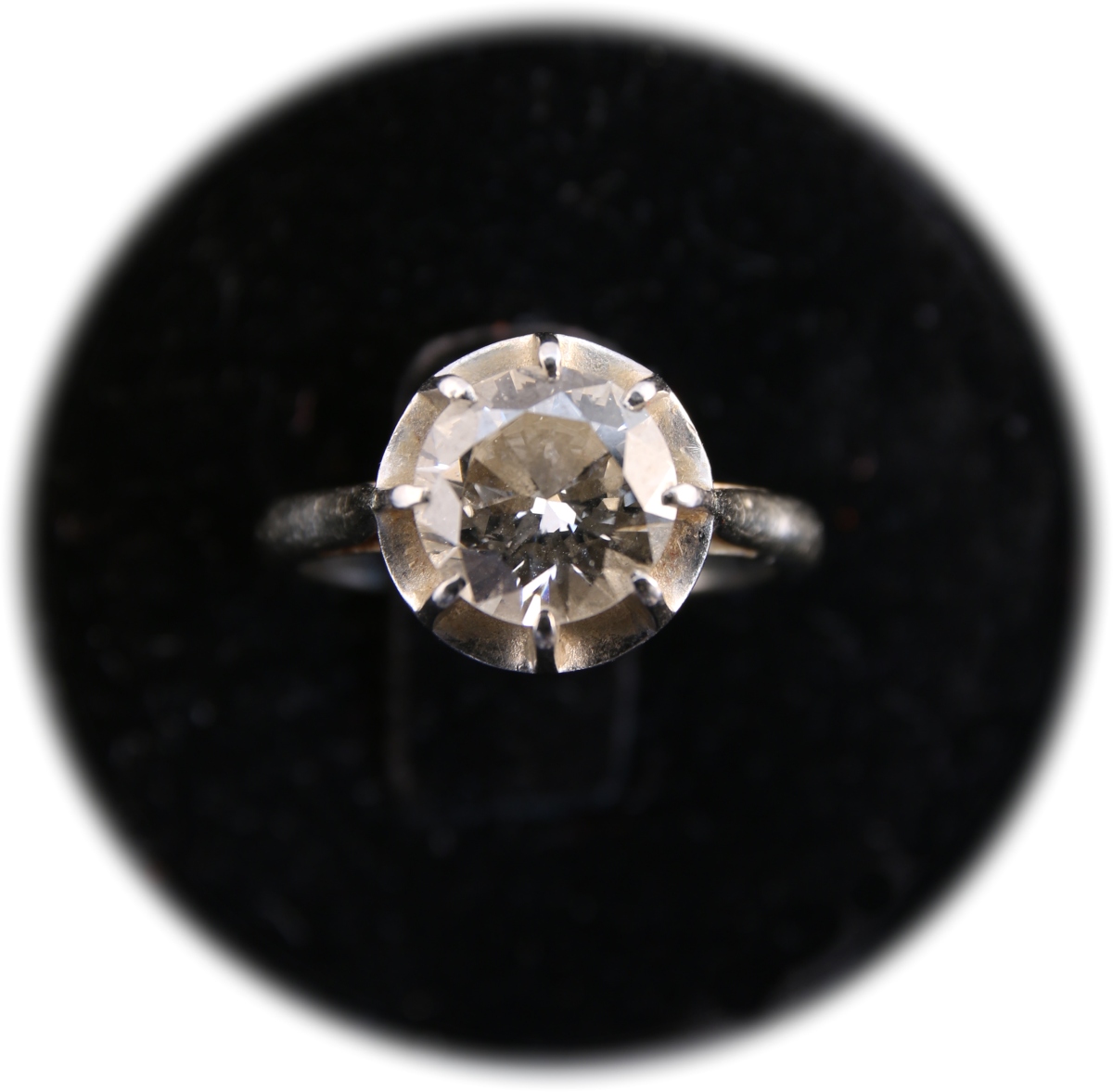 BAGUE en or gris 750°/oo et platine 850°/oo ornée au centre d'un diamant rond de taille brillant solitaire pesant 2.12 ct.