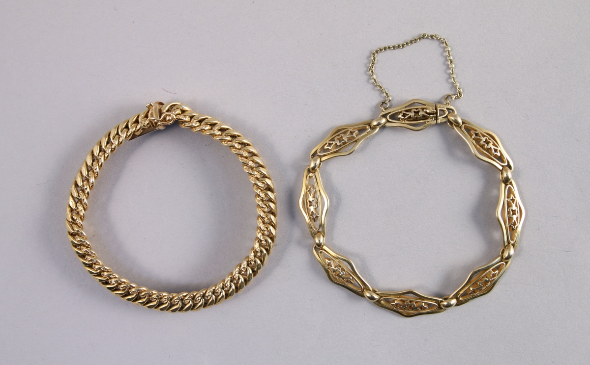 - Un bracelet à maille américaine (creux) avec un fermoir à cran de sécurité (Long. 17 cm)