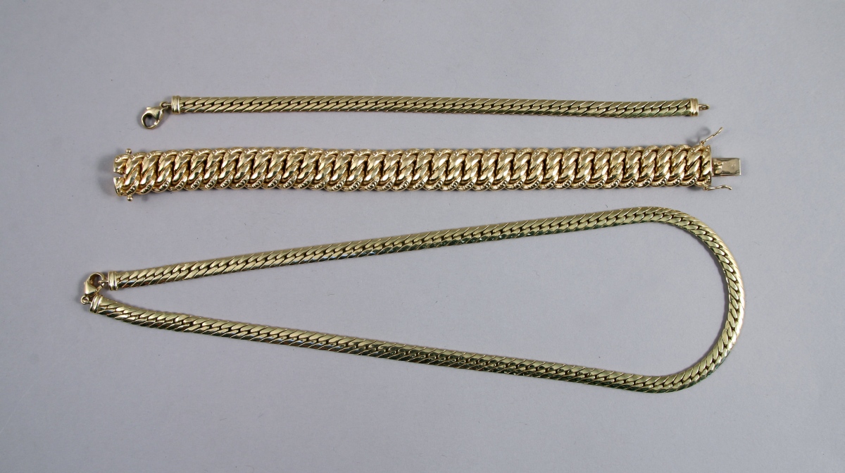 - PARURE composée d'un COLLIER et d'un BRACELET, maille anglaise.