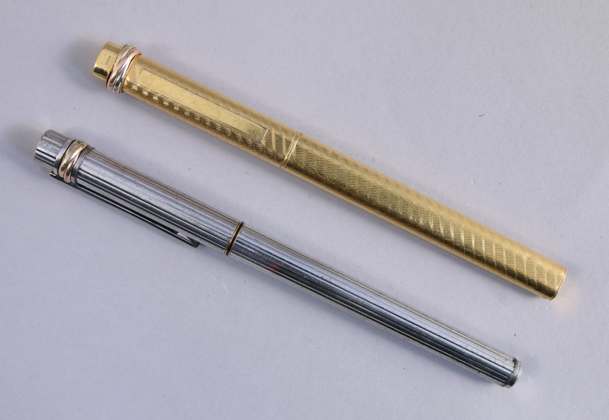 CARTIER. DEUX STYLOTS À BILLE ornés des trois anneaux "Trinity":