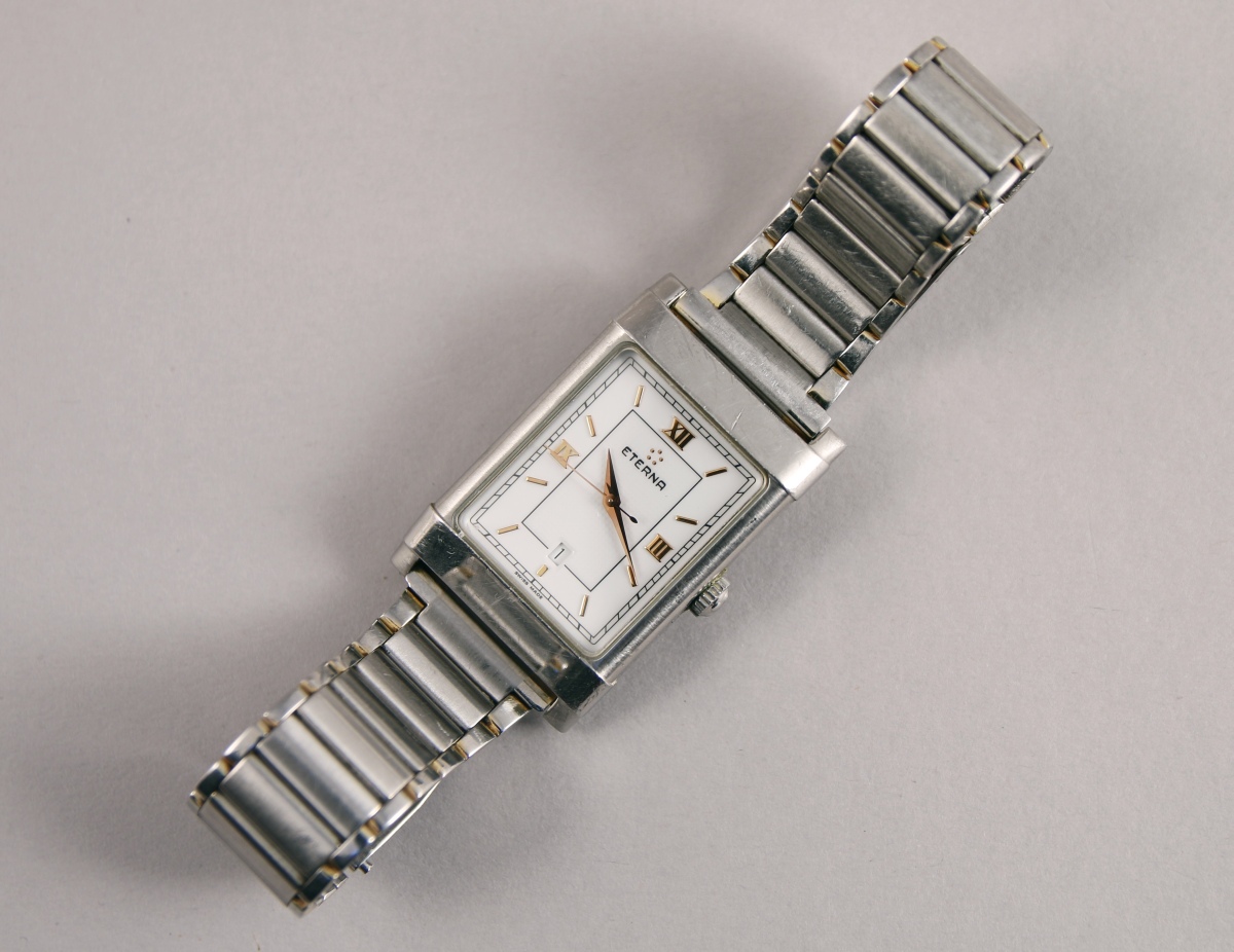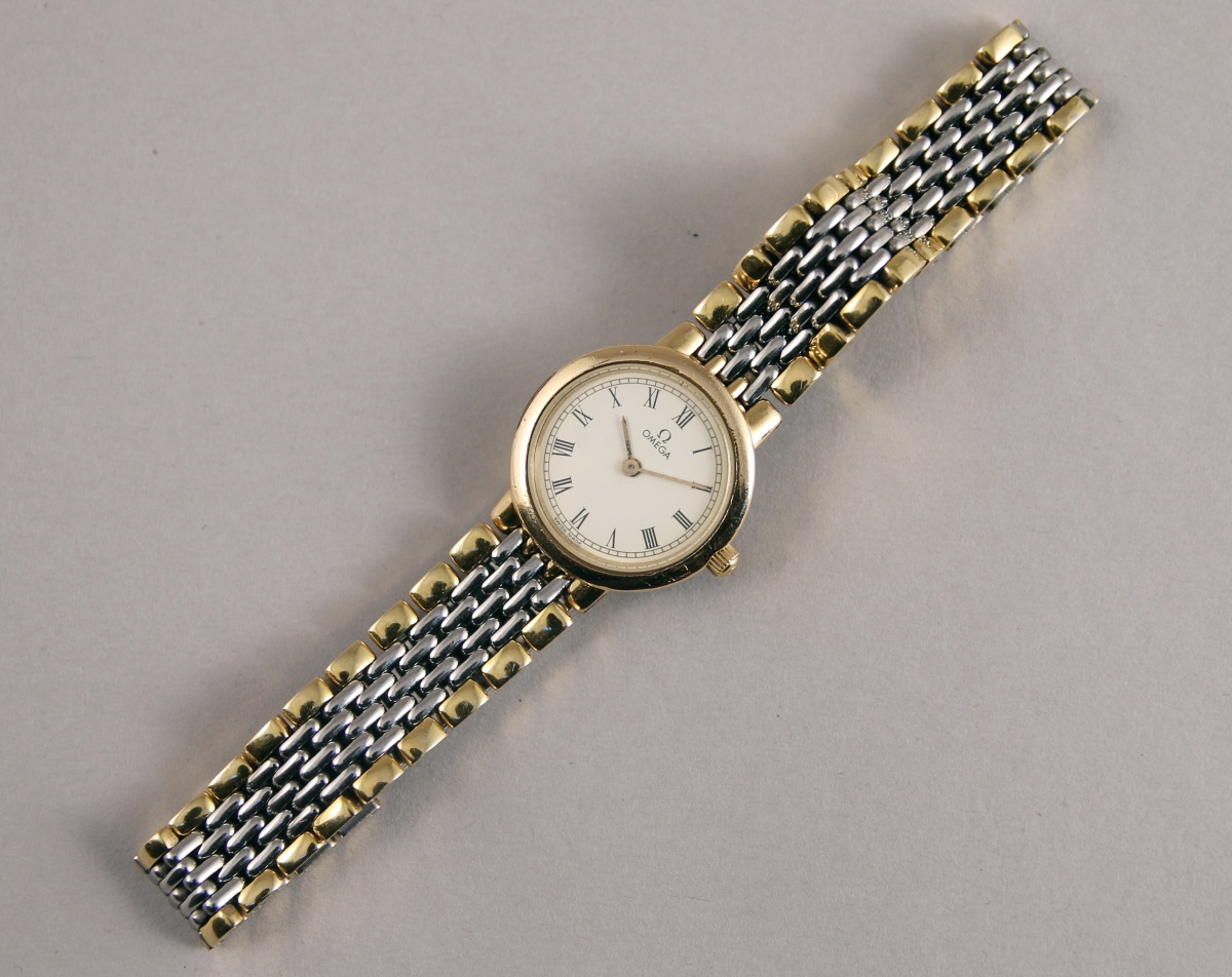 JOINT: DEUX MONTRES-BRACELET: une en acier de marque Eterna, une en métal doré et acier à quartz signée Omega.