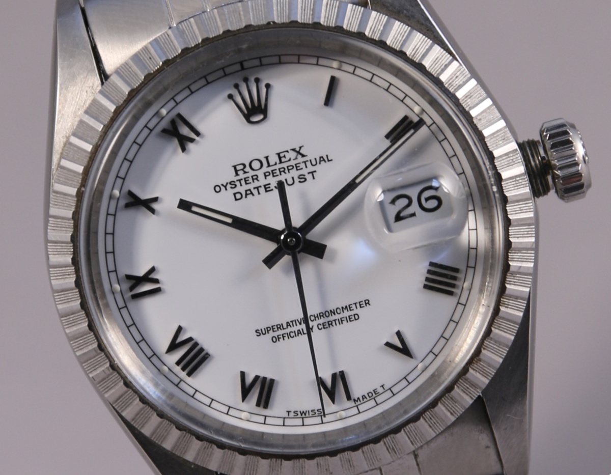 ROLEX. Datejust, Ref. 16030/16000, No. R587950. Montre bracelet en acier. Boîtier rond avec fond vissé. Cadran blanc avec trotteuse centrale et date à guichet. Bracelet en acier signé. Mouvement automatique, Cal. 3035.
