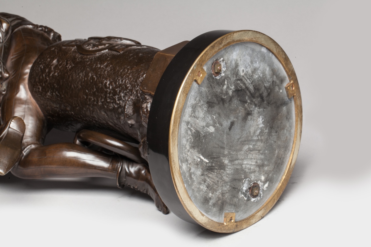 Sur un SOCLE circulaire de marbre noir cerclé de laiton. Haut. totale: 58,5 cm.