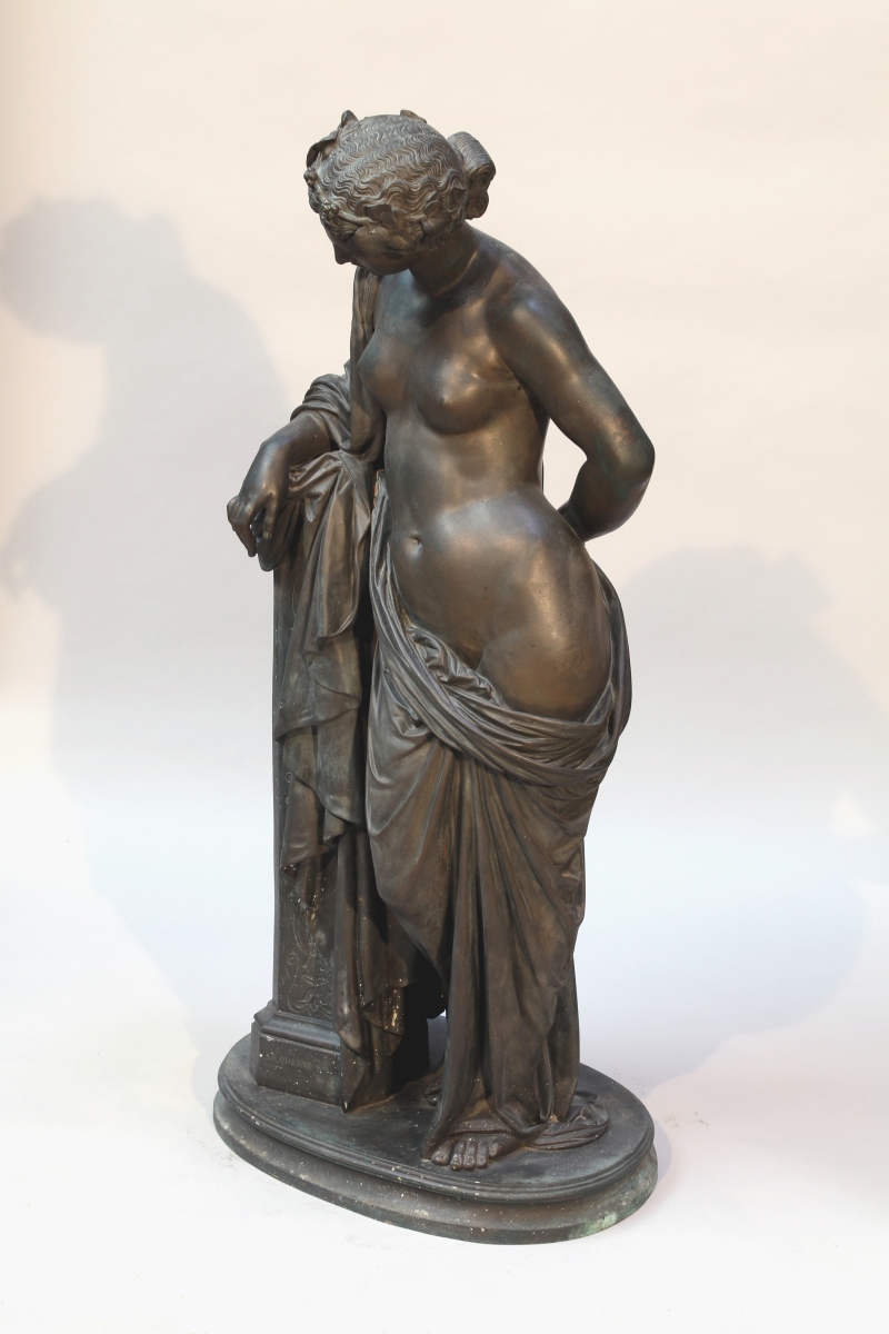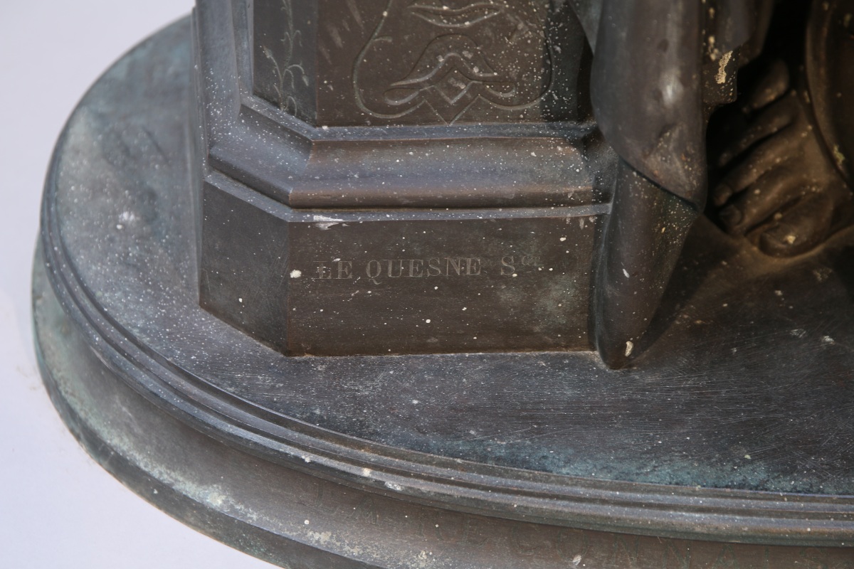 Bronze signé sur la base de la colonne "E. LEQUESNE", cachet du fondeur "SUSSE Frères, éditeur français de bronzes". Titré sur la base "RECONNAISSANCE".