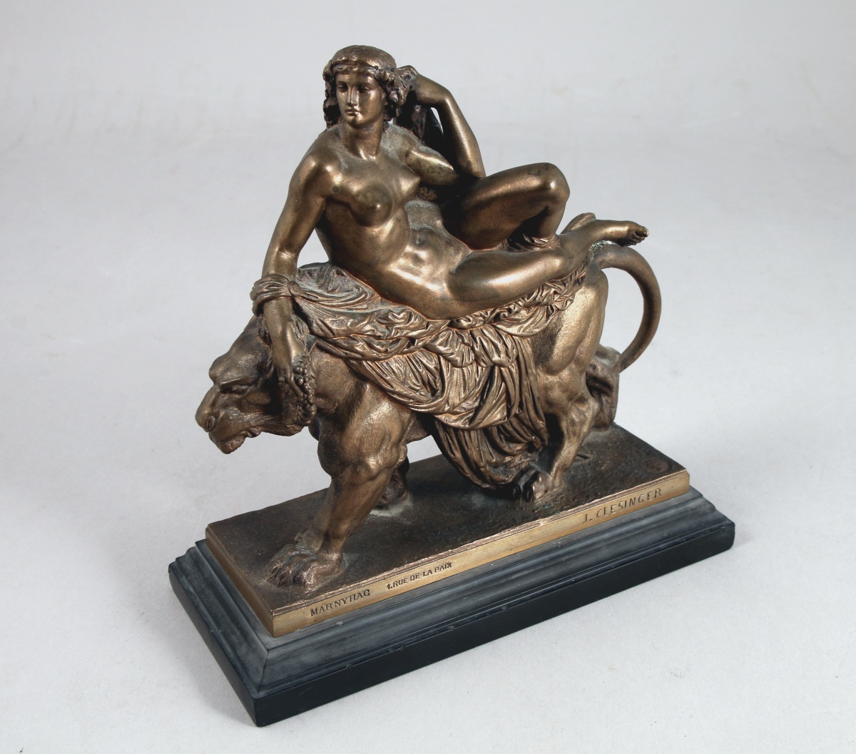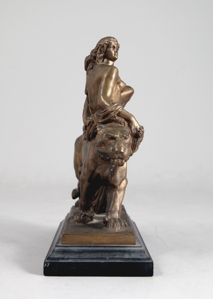 Ce bronze d'Auguste Clésinger présentant Ariane sur le dos d'un tigre a été édité d'après le Triomphe d'Ariane, marbre présenté au Salon de 1868 et aujourd'hui conservé au Musée des Beaux Arts de Besançon. Deux autres exemplaires en bronze sont connus dans les collections des musées: l'un, daté de 1866, au musée Chéret de Nice, l'autre issue d'une fonte Barbedienne, au musée Camille Claudel de Nogent-sur-Seine, dépôt du Musée des Arts décoratifs.